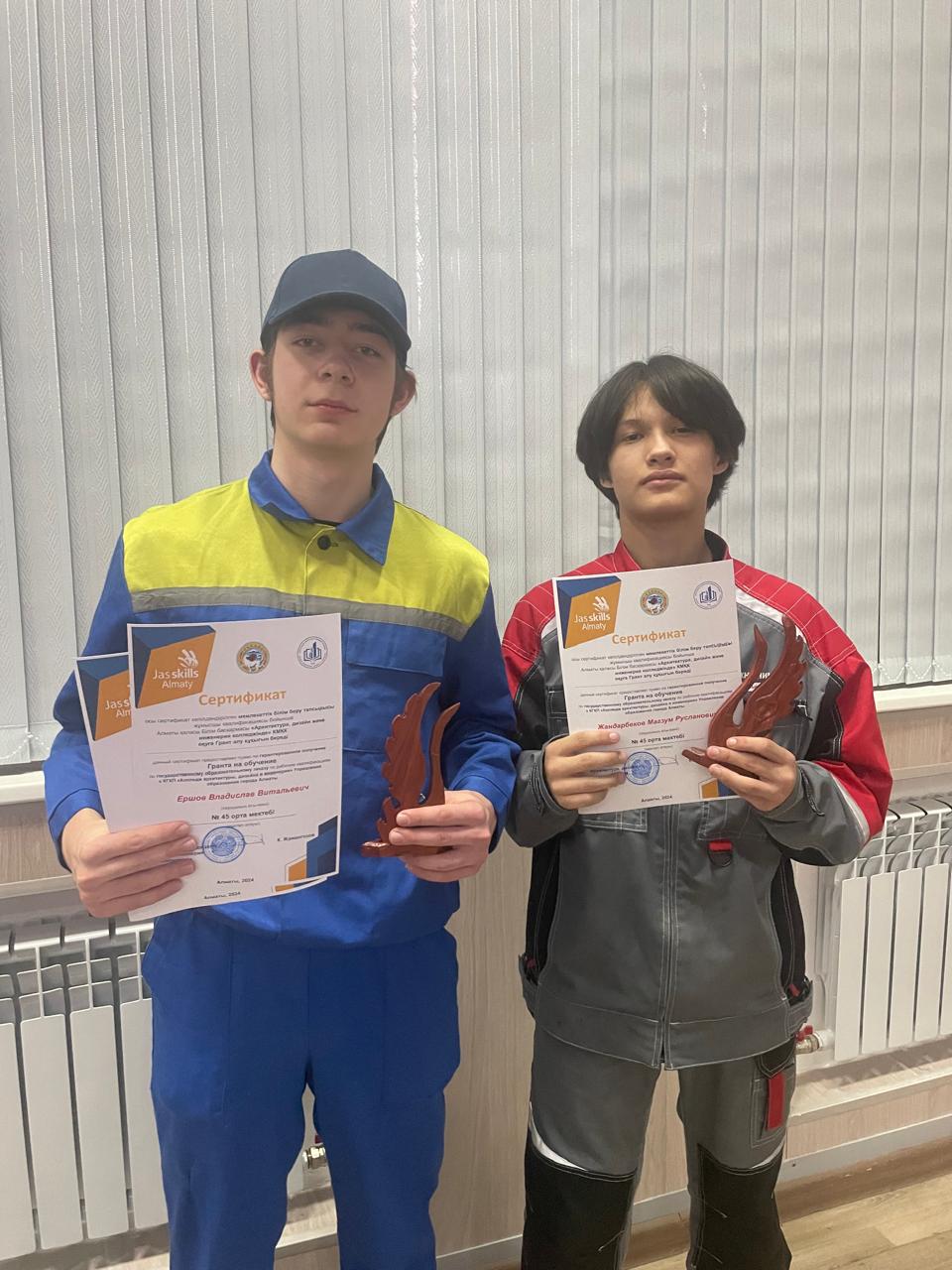 Наши ученики 9В класса вместе с руководителем (Туркестанова Динара) Ершов Владислав и Жандарбеков Магзум участвуют в группе - кровельные работы и домбыра. Ученики получили ГРАНТ НА ОБУЧЕНИЕ в колледже, поздравляем!