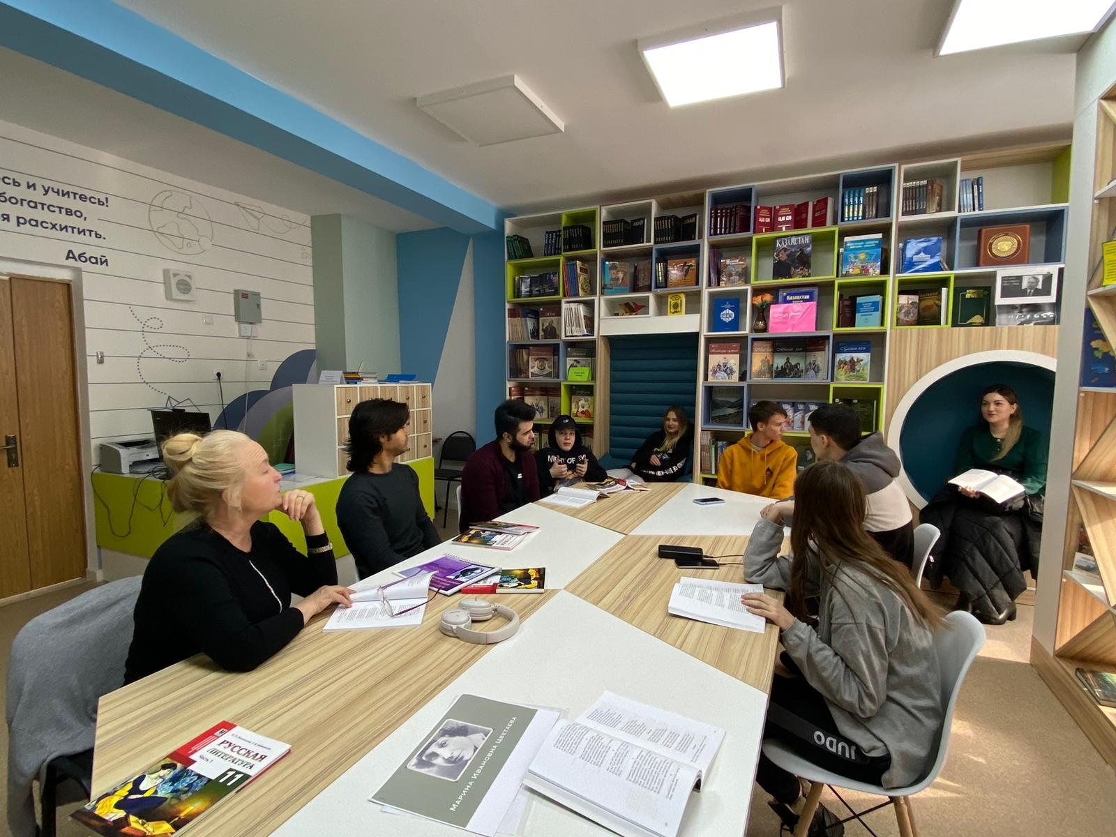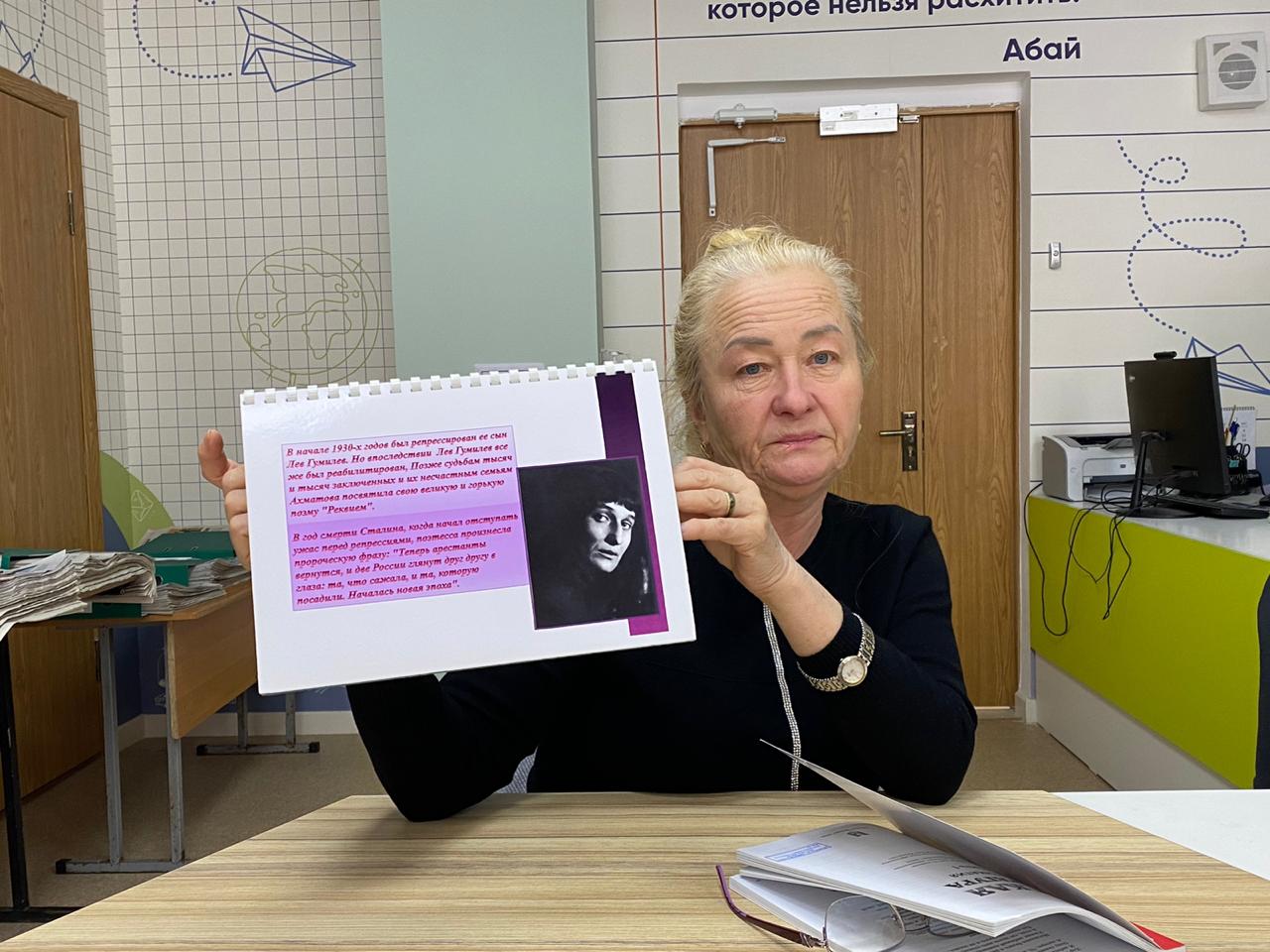 22 декабря 2022 года в библиотеке КГУ ОШ №45 вечернее отделение под руководством учителя русской литературы Политиковой Е.И. и учителя казахской литературы Искаковой К.Б. сравнивали тексты поэтов, живших в эпоху перемен, читали стихи поэтов Серебряного века и рассуждали о трагических судьбах тех, кто «писал без разрешения».