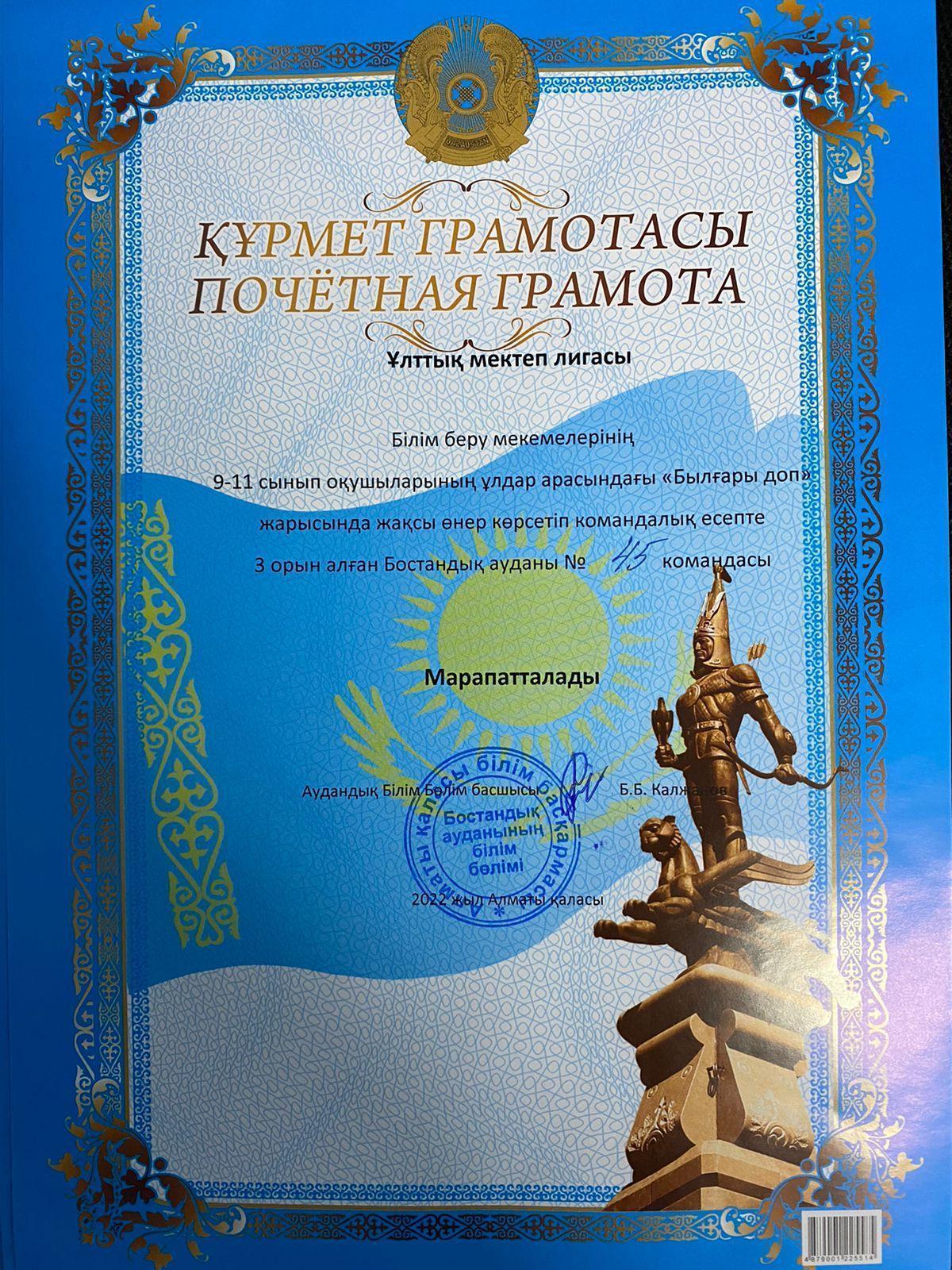 Мектеп оқушыларының жетістігі. Достижение школьников