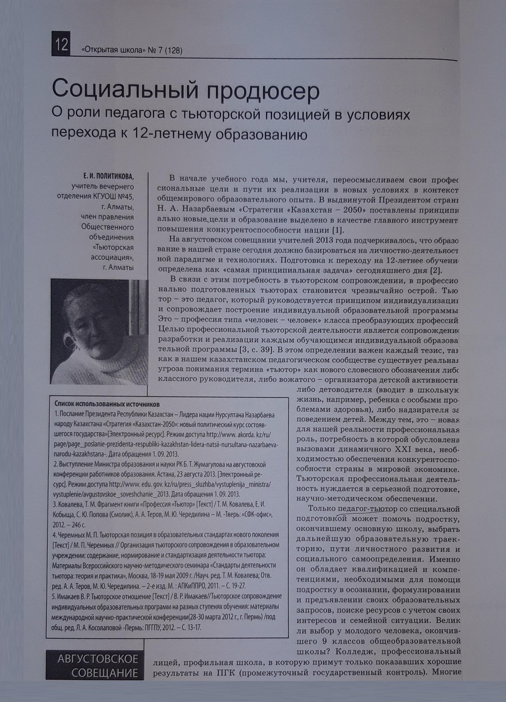 05 желтоқсан 2020 0 1 2 3 4 5 Социальный продюсер О роли педагога с тьюторской позицией в условиях перехода к 12-летнему образованию