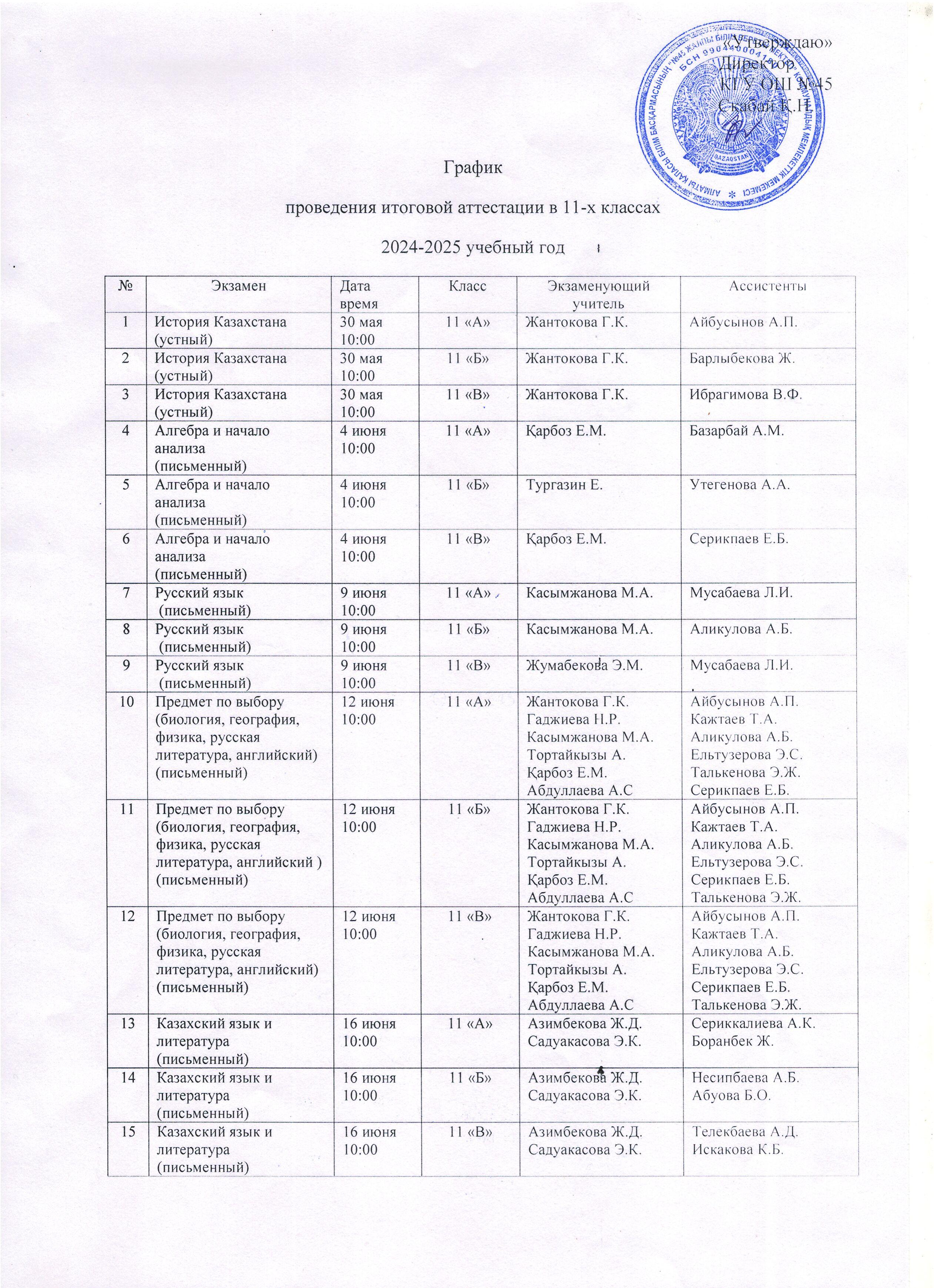2024-2025 оқу жылының аралық аттестаттау кестесі. График проведения промежуточной аттестации обучающихся в 2024-2025 учебном году