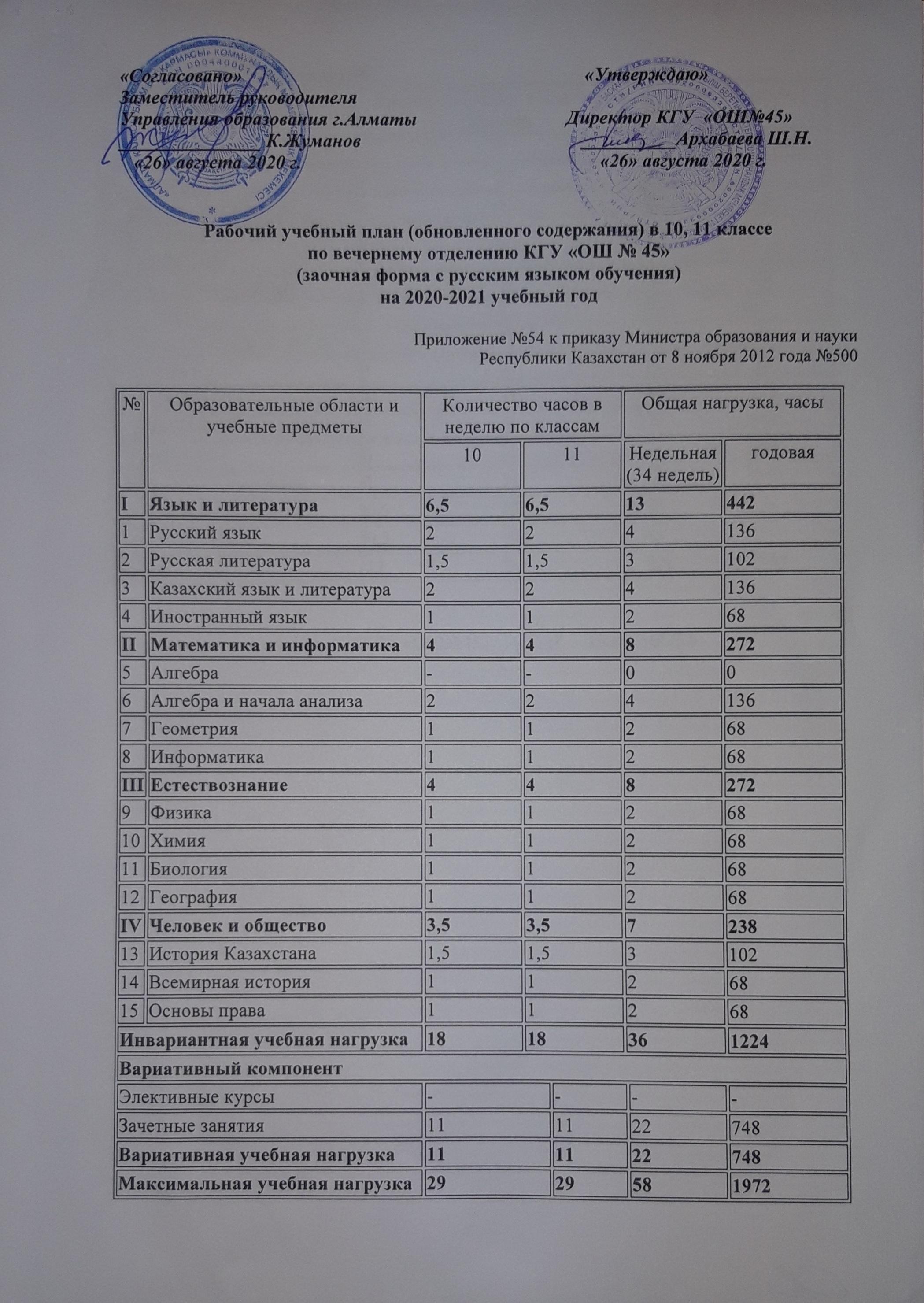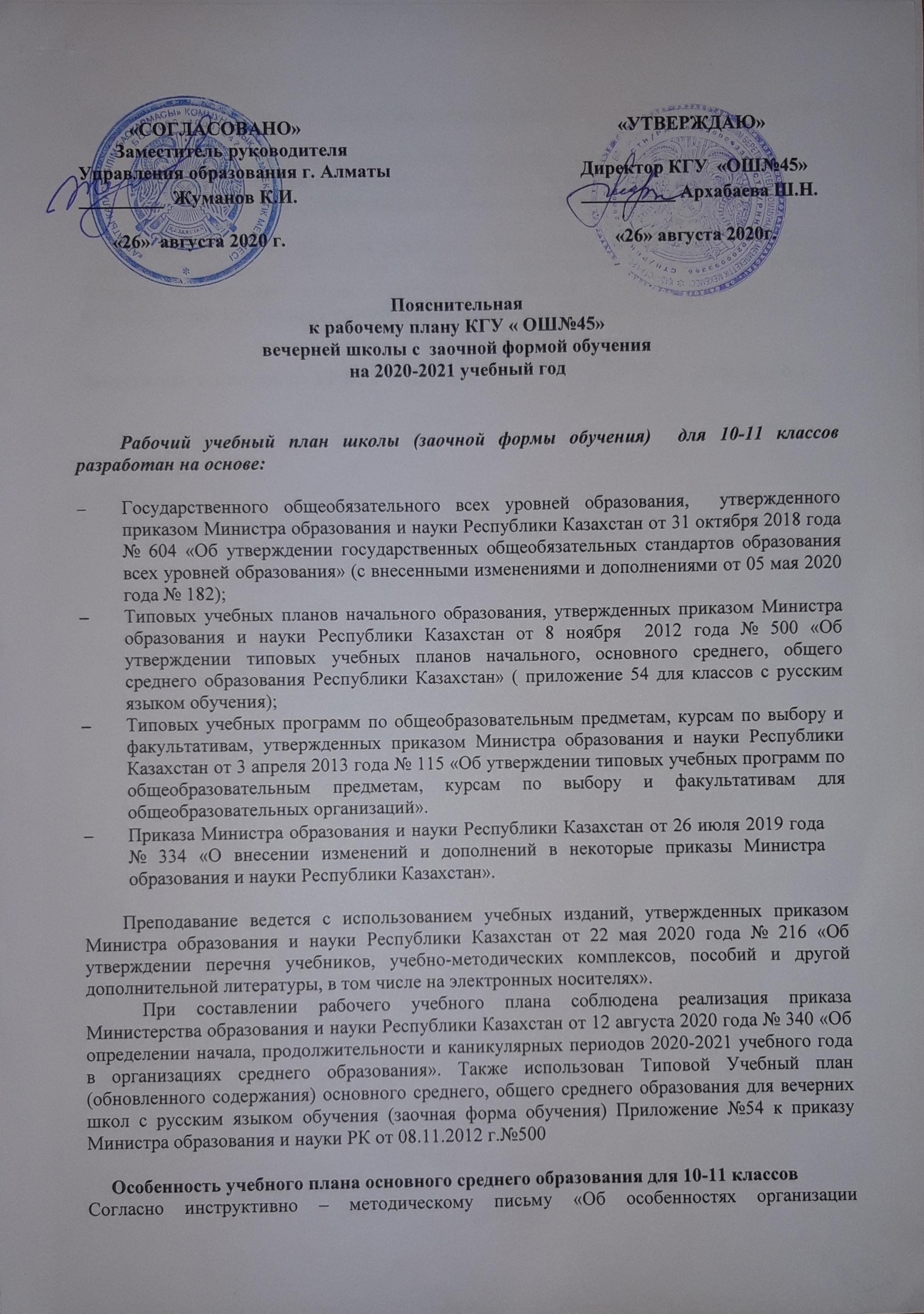05 желтоқсан 2020 0 1 2 3 4 5 Алматы қаласы Білім басқармасының «№45» КММ кешкі бөліміне (сырттай) оқу жұмыс жоспары. Рабочий учебный план по вечернему отделению (заочная форма обучения) КГУ "ОШ№45" управления образования г. Алматы.