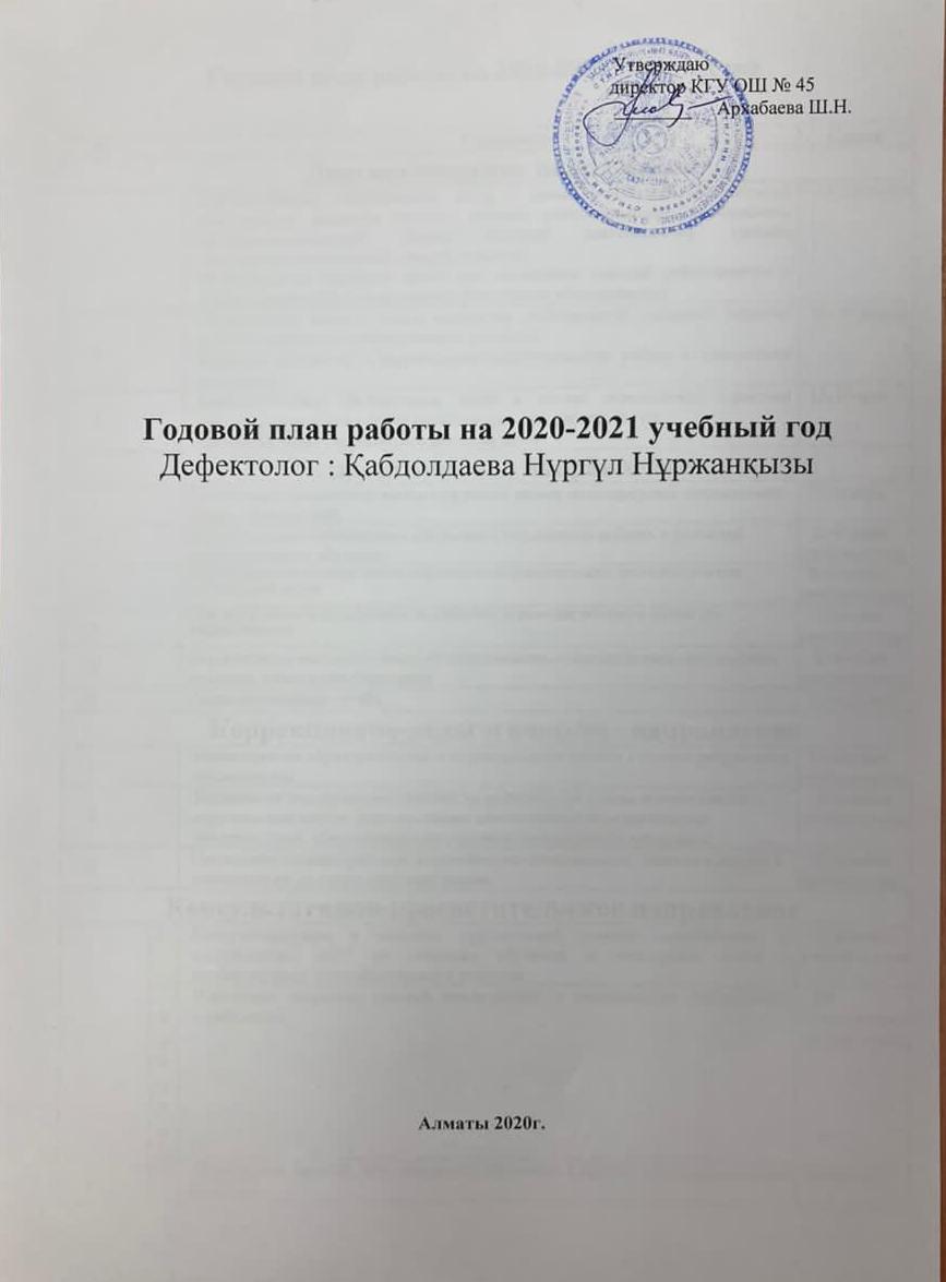 07 желтоқсан 2020 0 1 2 3 4 5 Дефектологтың 2020-2021 оқу жылына жұмыс жоспары / План работы дефектолога 2020-2021 учебный год