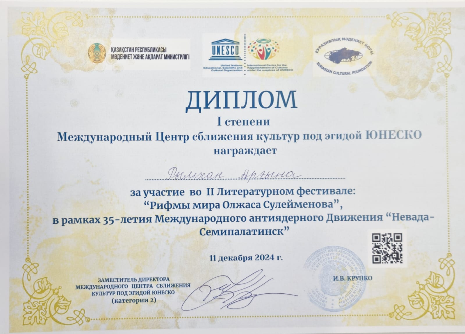 13 желтоқсан 2024 0 1 2 3 4 5 «ОЛЖАС СҮЛЕЙМЕНОВ ӘЛЕМІНІҢ РИФМТЕРІ» ӘДЕБИЕТ ФЕСТИВАЛІ. "РИФМЫ МИРА ЛИТЕРАТУРНЫЙ ФЕСТИВАЛЬ ОЛЖАСА СУЛЕЙМЕНОВА"