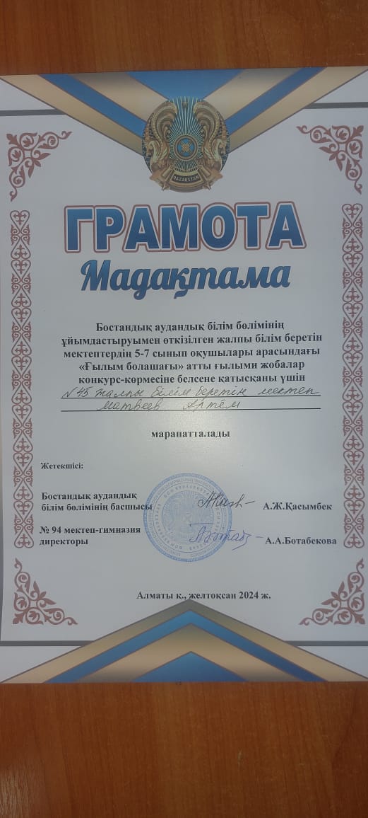 » «ҒЫЛЫМ БОЛАШАҒЫ» БАЙҚАУ 5-7 СЫНЫП. КОНКУРС "БУДУЩЕЕ НАУКИ" 5-7 КЛ