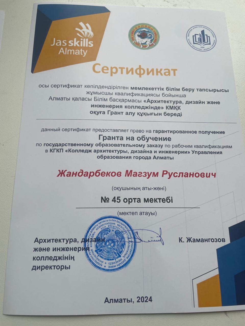 Алматыда «JasSkills» қалалық кәсіби шеберлік байқауы өтуде. Біздің 9В сынып оқушылары жетекші (Түркістанова Динара), Ершов Владислав және Жандарбеков Мағзұммен бірге үйірмеге шатыр жабу жұмыстары және домбыра жасау конкурсына қатыстып, оқушыларымыз колледжге ОҚУҒА ГРАНТ алды, құттықтаймыз!