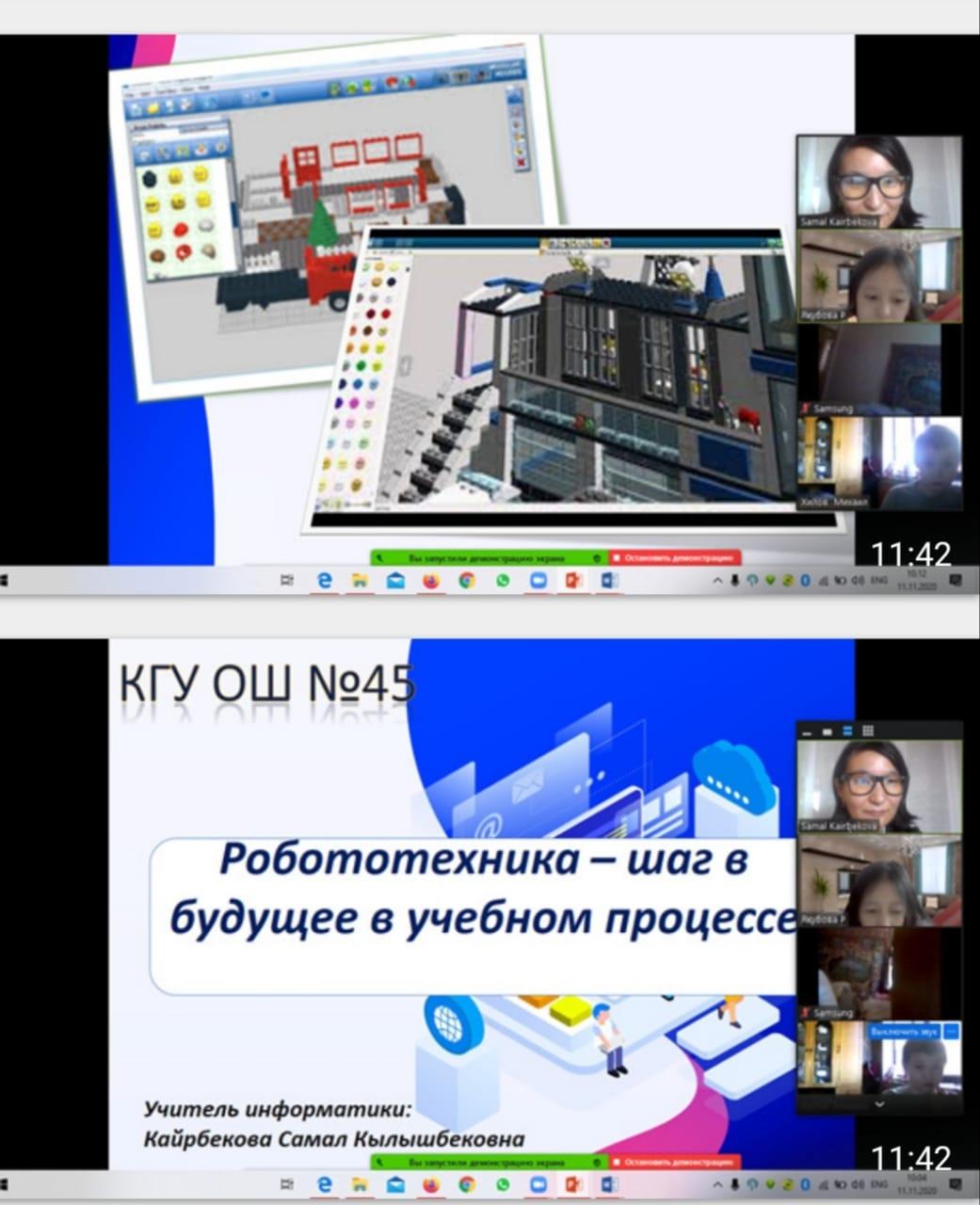 2020 жылдың 11 қарашасында №45 КММ жалпы білім беретін мектебі мектеп оқушыларымен робототехника бойынша онлайн тренинг өткізді.11 ноября 2020года в КГУ Общеобразовательная школа 45 прошел онлайн-тренинг по робототехнике с учащимися школы