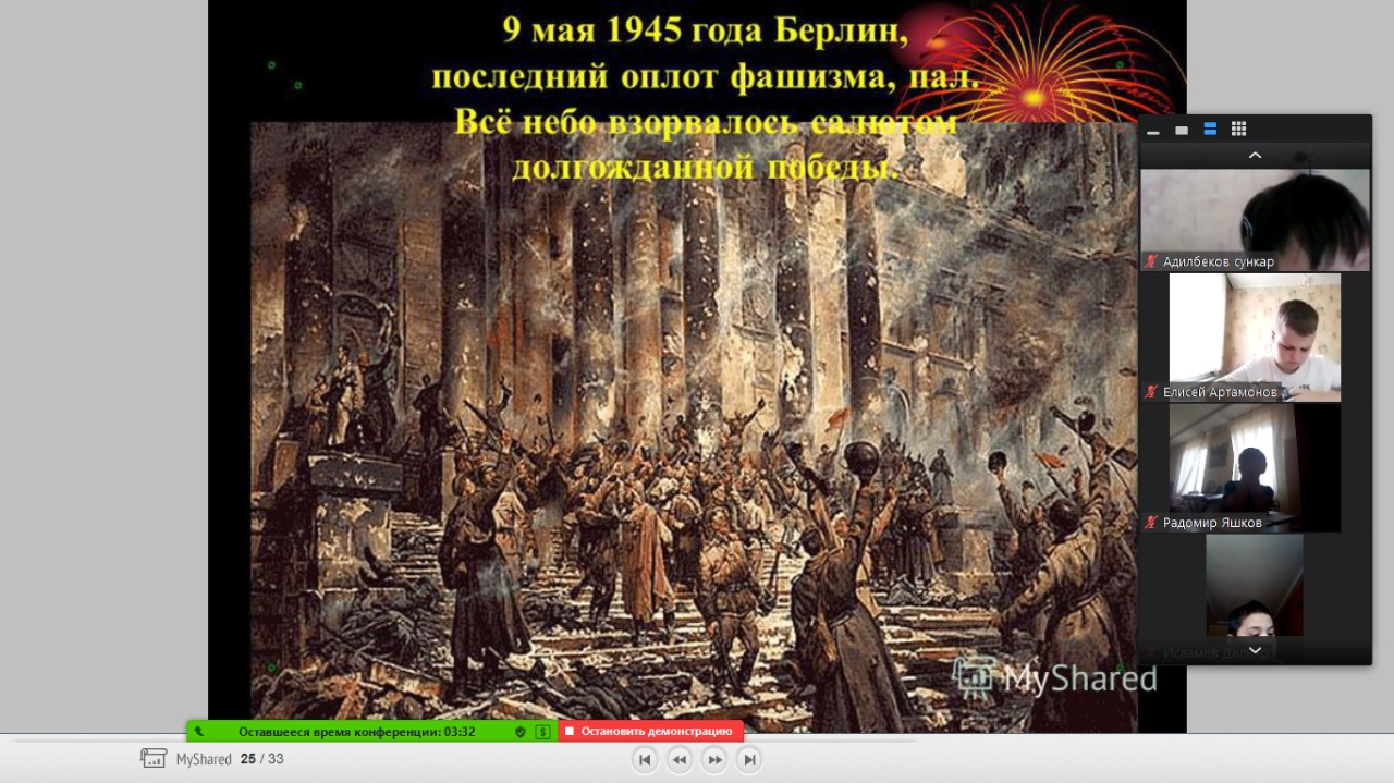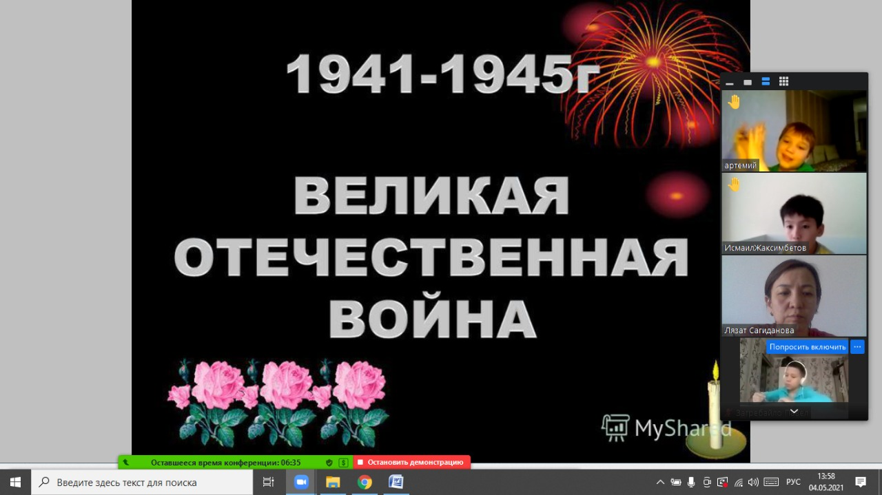 10 мамыр 2021 0 1 2 3 4 5 Жеңіс күніне арналған 1-4 сынып оқушыларының сынып сағаттары. Классные часы для учащихся 1-4х классов, посвященные ко Дню Победы 3 "Б" сынып. Сынып жетекшісі: Хаджиева Б.Л. 4"А" сынып. Сынып жетекшісі: Шаповалова С.Н. 3"А" сынып. Сынып жетекшісі: Чубаева И.Л. " Өлмейтін полк онлайн" 2"Г" сынып. Сынып жетекшісі: Сагиданова Л.Ж. 2"А" сынып. Сынып жетекшісі: Юрукина Е.Б.