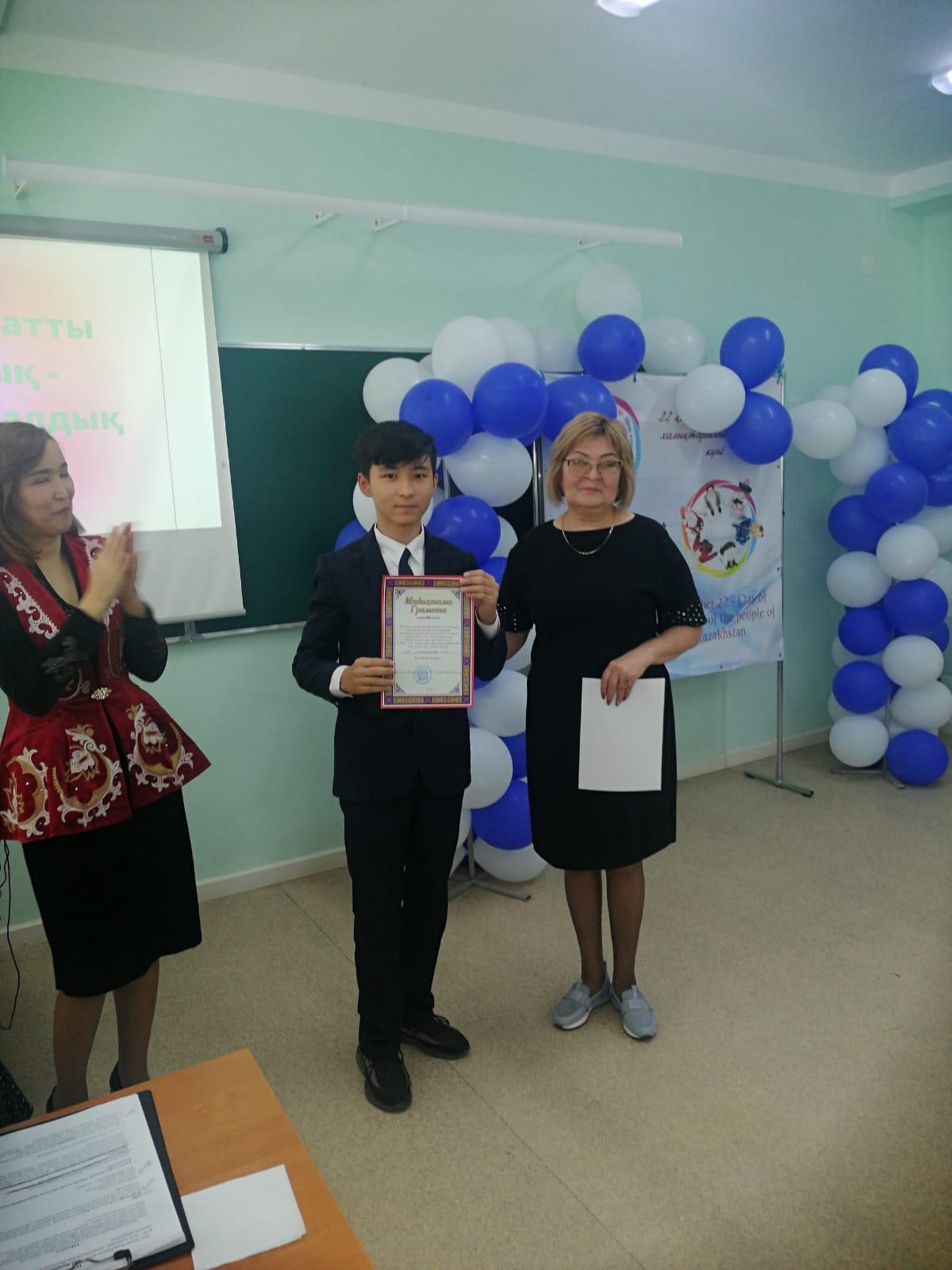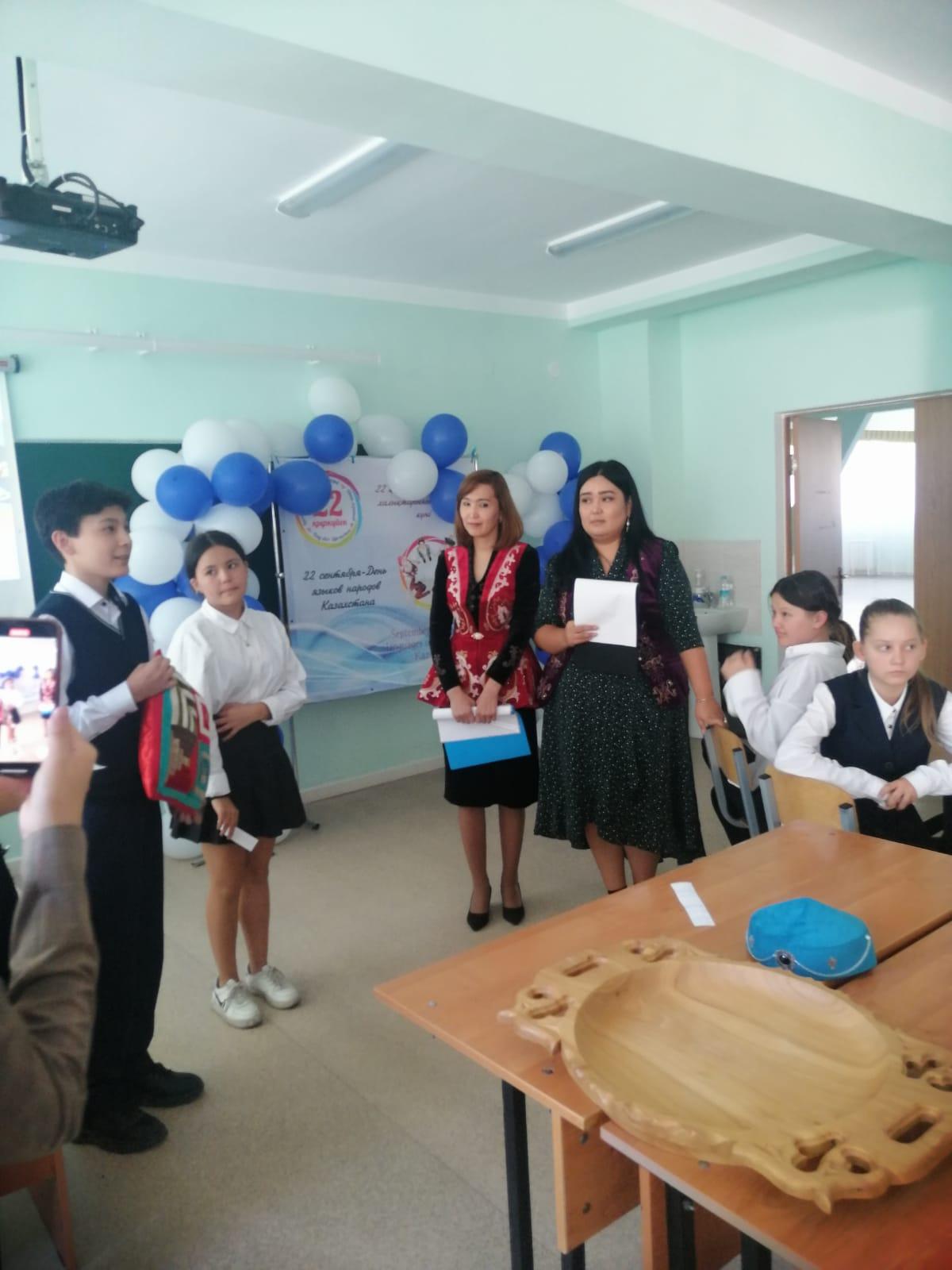 Мектепте Тілдер күніне арналған іс-шаралар өткізілді. Соның бірі – қазақ ағартушы, қазақ кәсіби журналистикасының негізін салушы Ахмет Байтұрсынұлының 150 жылдығына арналған ашық сабақ. В школе были проведены мероприятия посвященные Дню языков. Одним из них является открытый урок к 150-летию казахского просветителя и основоположника казахской профессиональной журналистики Ахмета Байтурсынова.