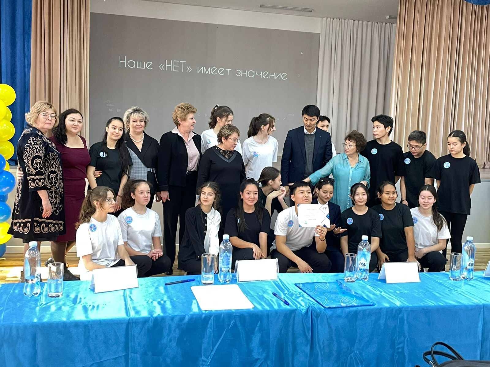 №45 мектепте «Біздің «ЖОҚ» маңызды!» Әлеуметтік бастамалардың қалалық жобасы байқауы өтті. Бірінші орын алған No45 мектептің өзін-өзі басқаруының үгіт-насихат тобын құттықтаймыз! https://www.instagram.com/p/ClYEJ80Nhrq/В школе №45 прошел конкурс Городской проект социальных инициатив "Наше "НЕТ" имеет значение!"