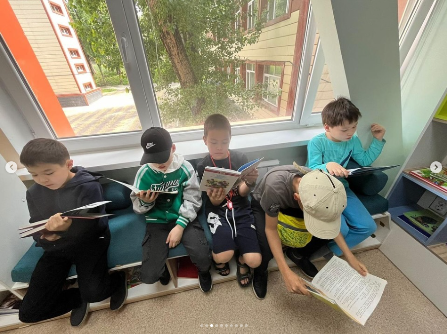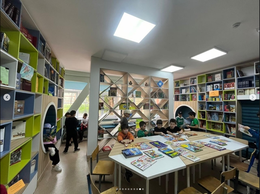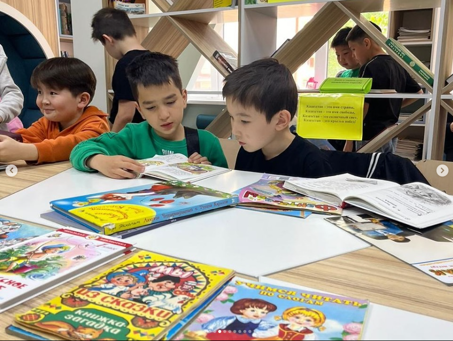 Балалар мектеп кітапханасында кітап әлеміне еніп, уақыттарын қызықты өткізді. Дети прекрасно провели время, погрузившись в мир книг в школьной библиотеке.