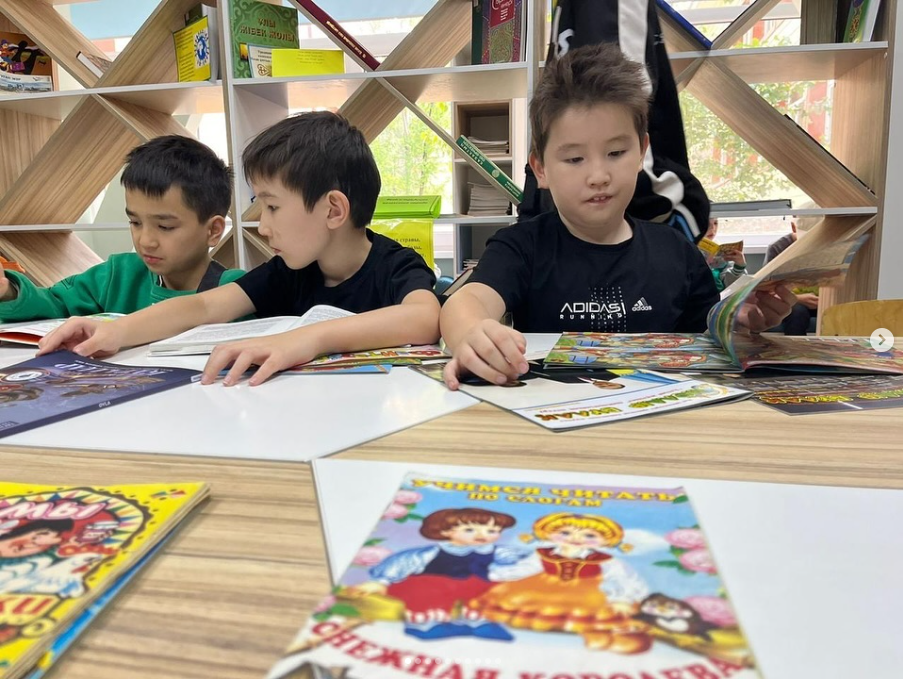 Балалар мектеп кітапханасында кітап әлеміне еніп, уақыттарын қызықты өткізді. Мұнда әркім өзіне ұнайтын нәрсені тапты: қызықты шытырман оқиғалар, достық пен сиқыр туралы қызықты әңгімелер, танымдық энциклопедиялар. Кітапханашы балаларға кітап таңдауға көмектесіп, қызықты жаңа атаулар мен классикалық шығармаларды ұсынды. Кітапхананың тыныш атмосферасында балалар оқуды, армандауды және жаңа нәрселерді білуді ұнатады.Страницы книг переносили их в удивительные миры, расширяя горизонты и пробуждая воображение. Чтение в библиотеке оставляло у ребят незабываемые впечатления и радость от новых открытий.