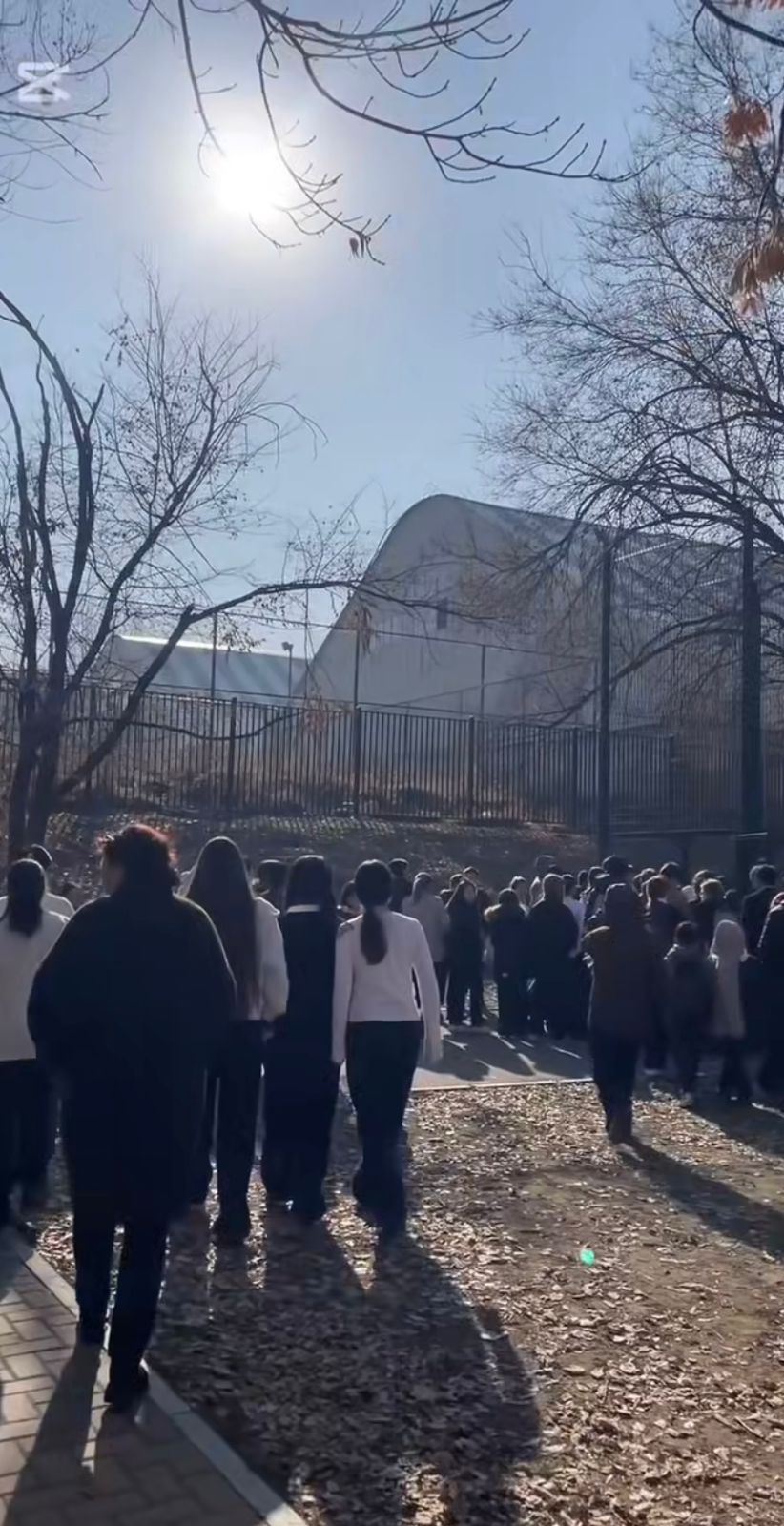 Все классы организованно покинули здание школы и собрались в безопасной зоне.