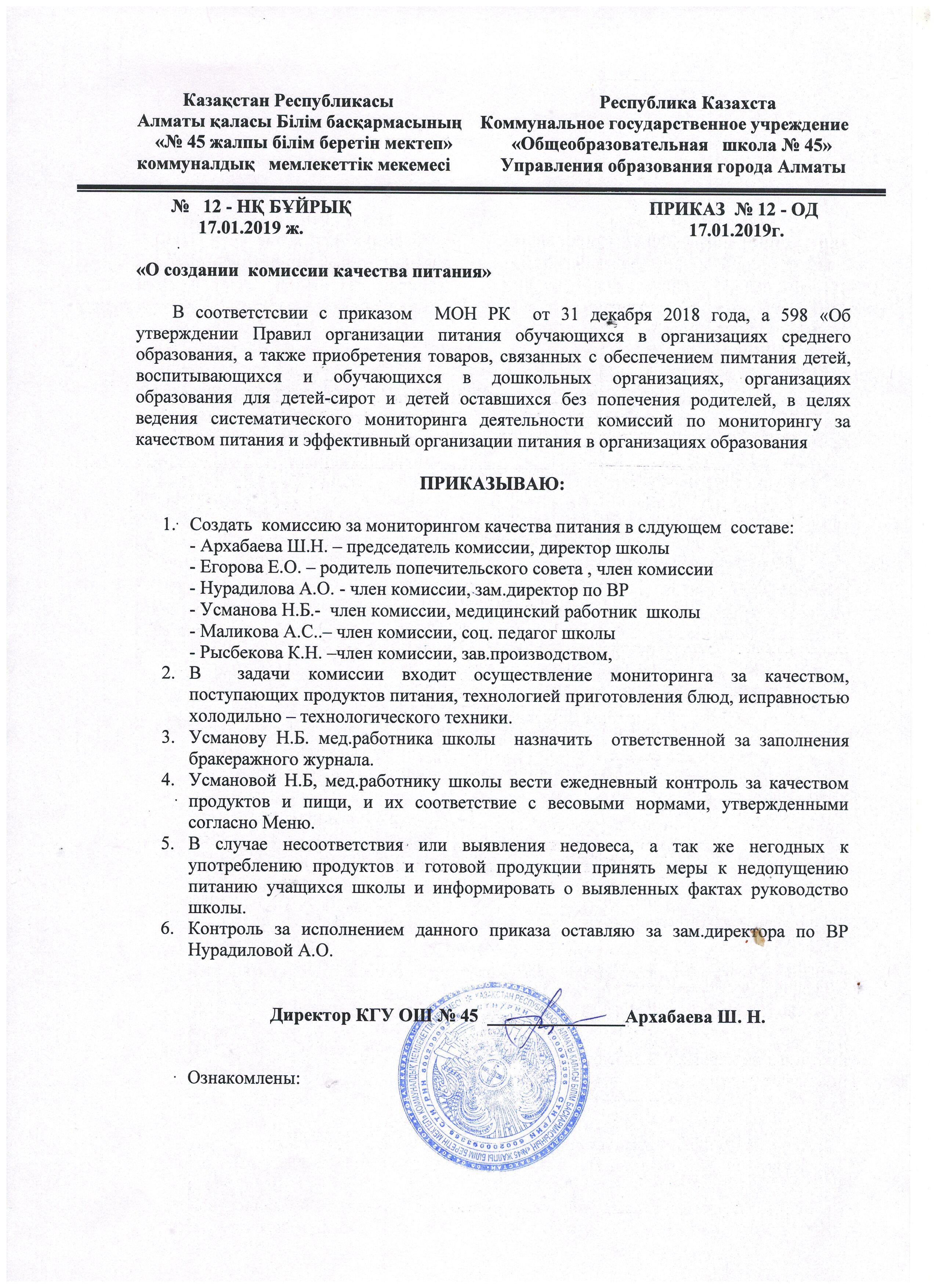 Коммунальное государственное учреждение «Общеобразовательная школа №45» Управления образования города Алматы