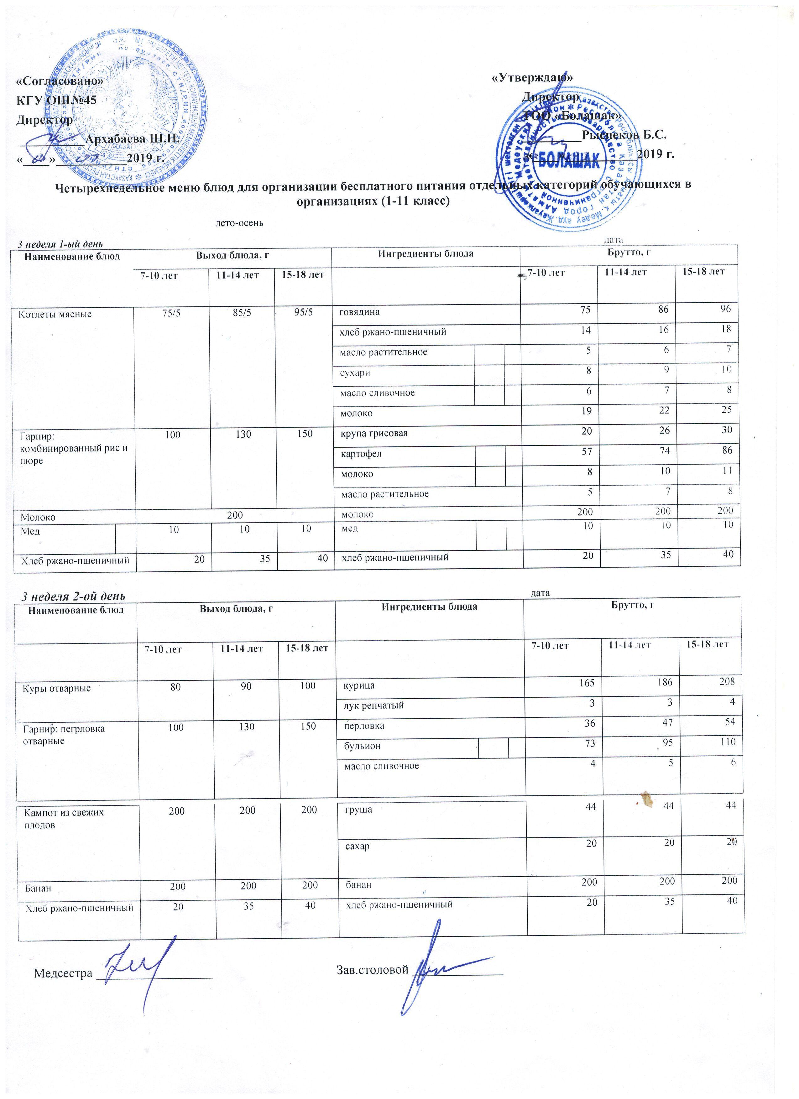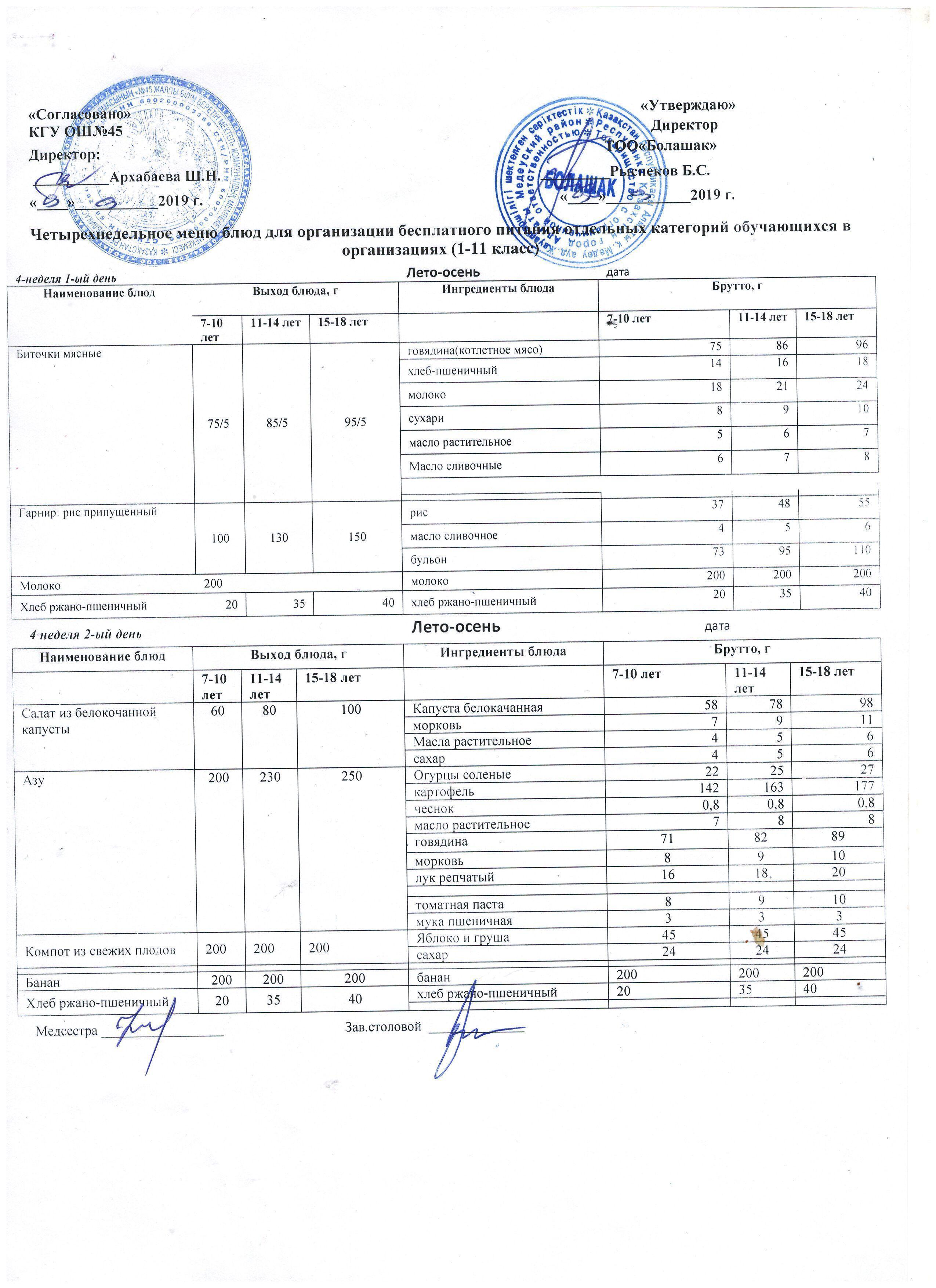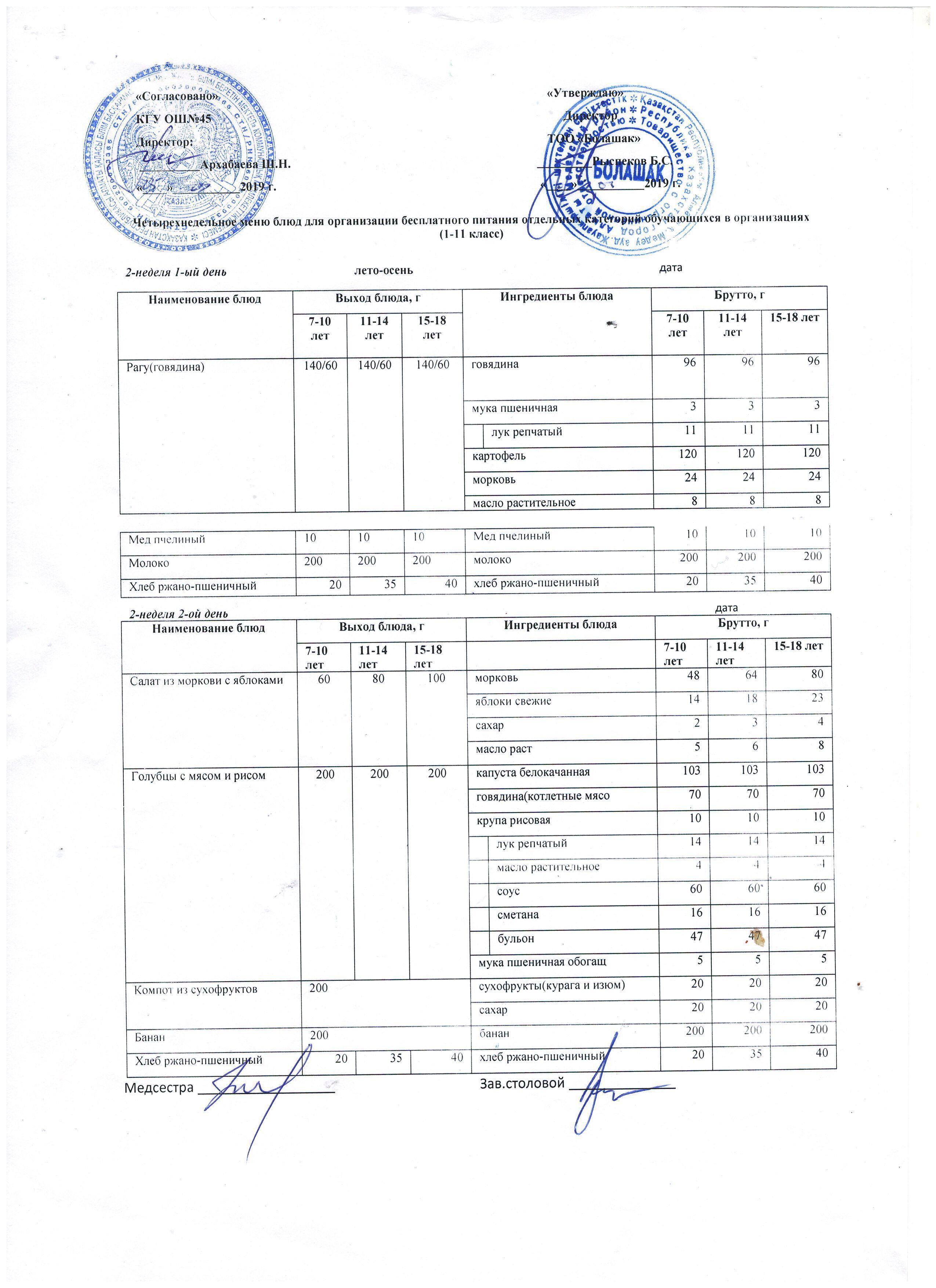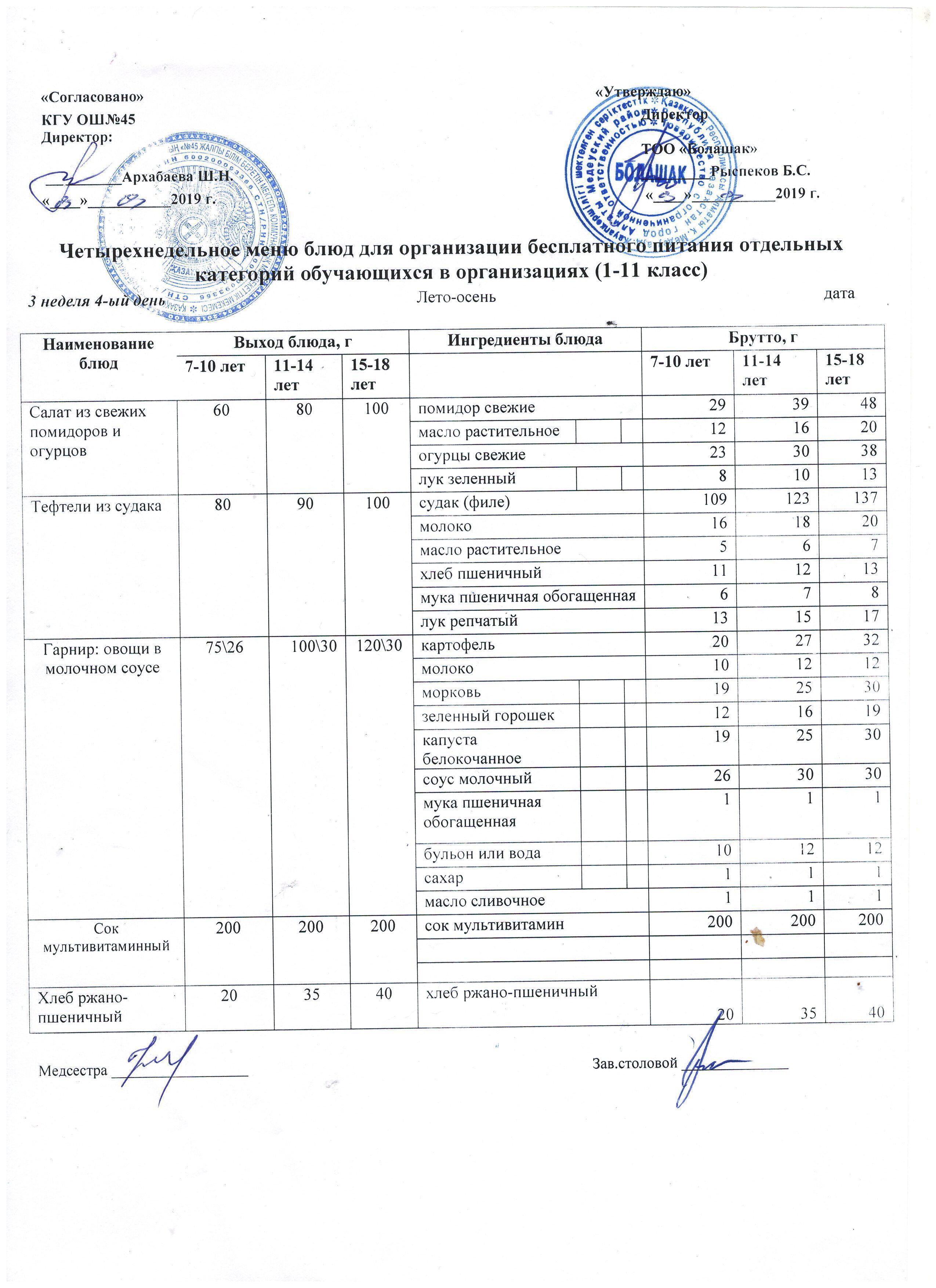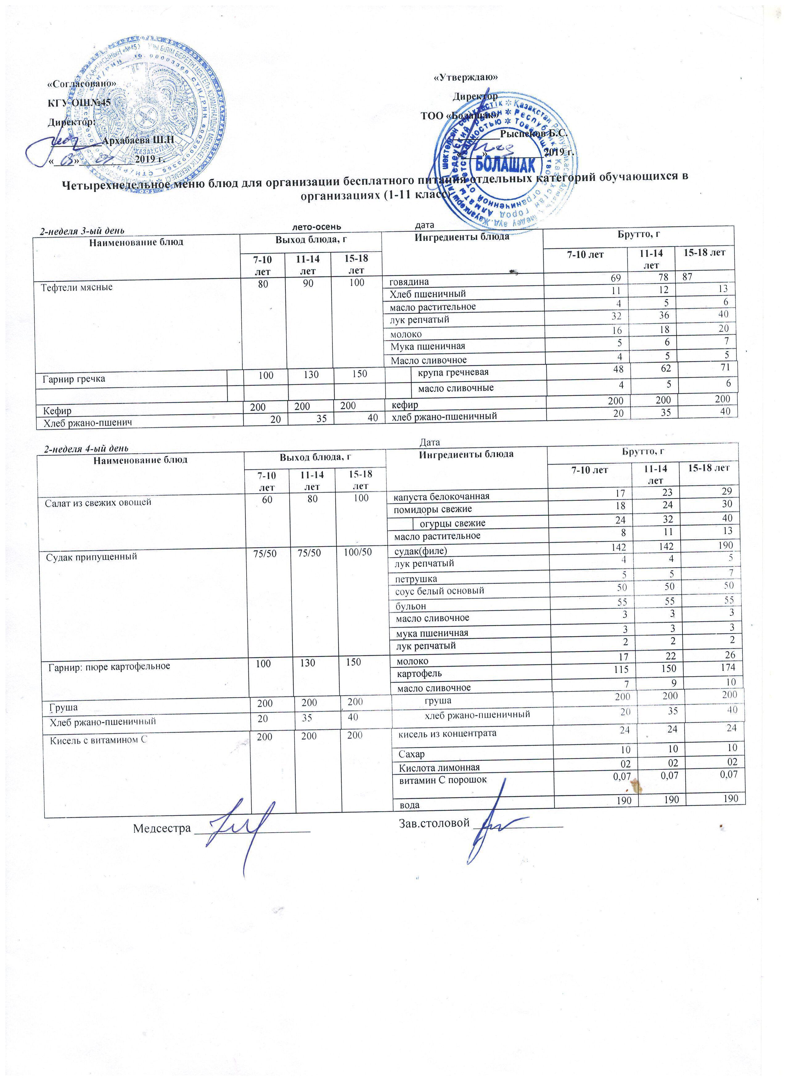 Ас мәзірі жаз-күз 2019 ж .Меню лето -осень на 2019 год