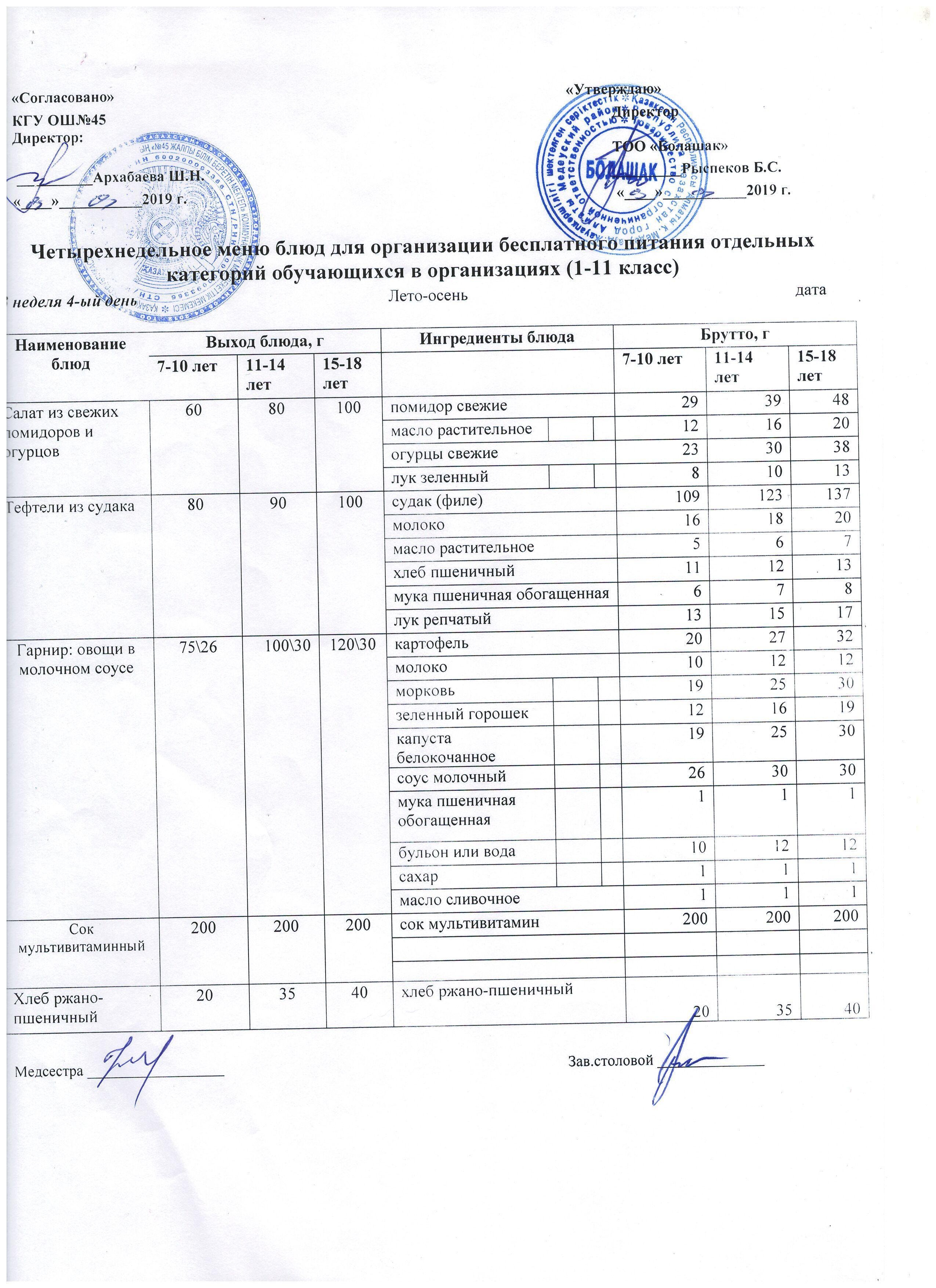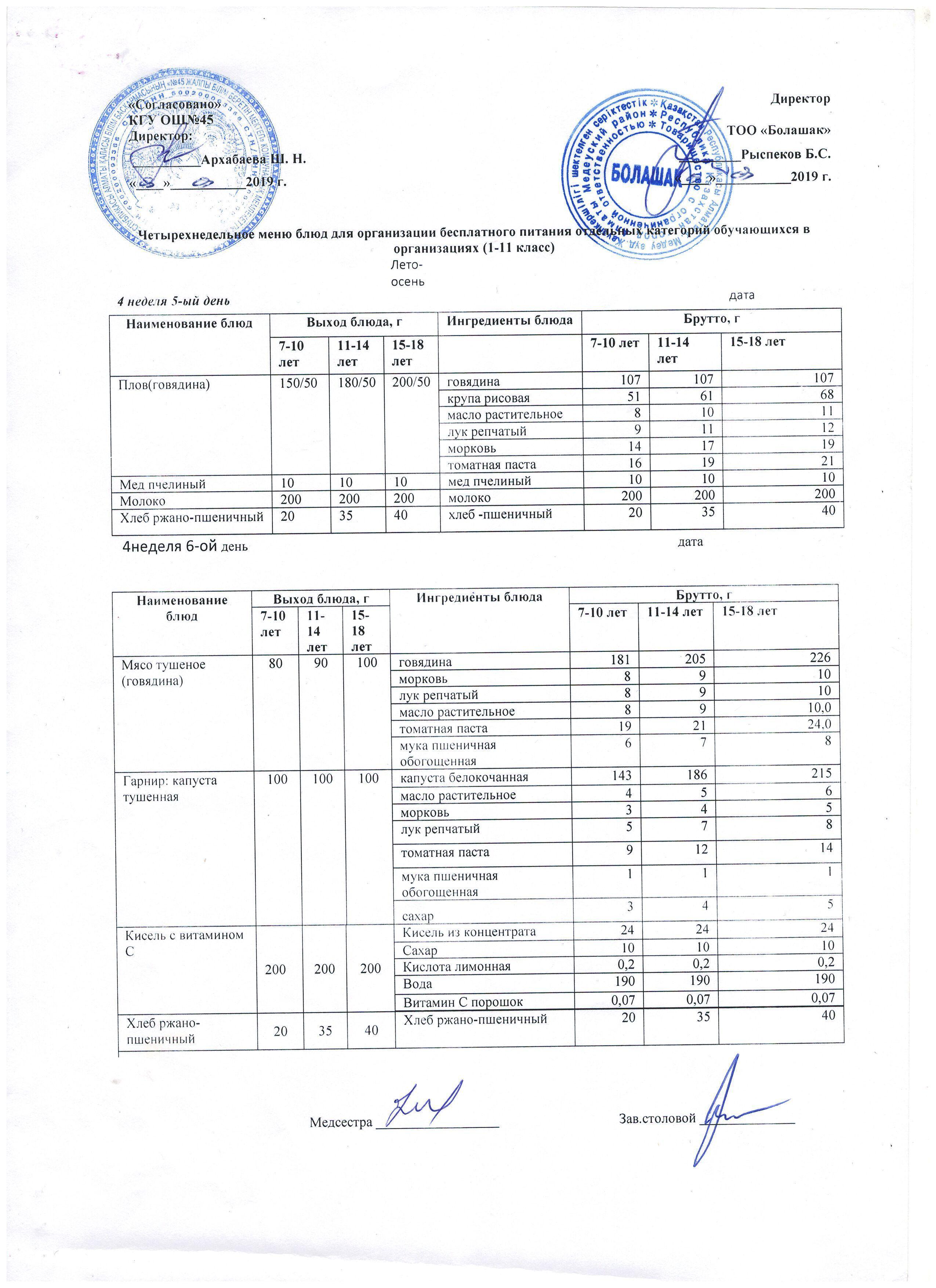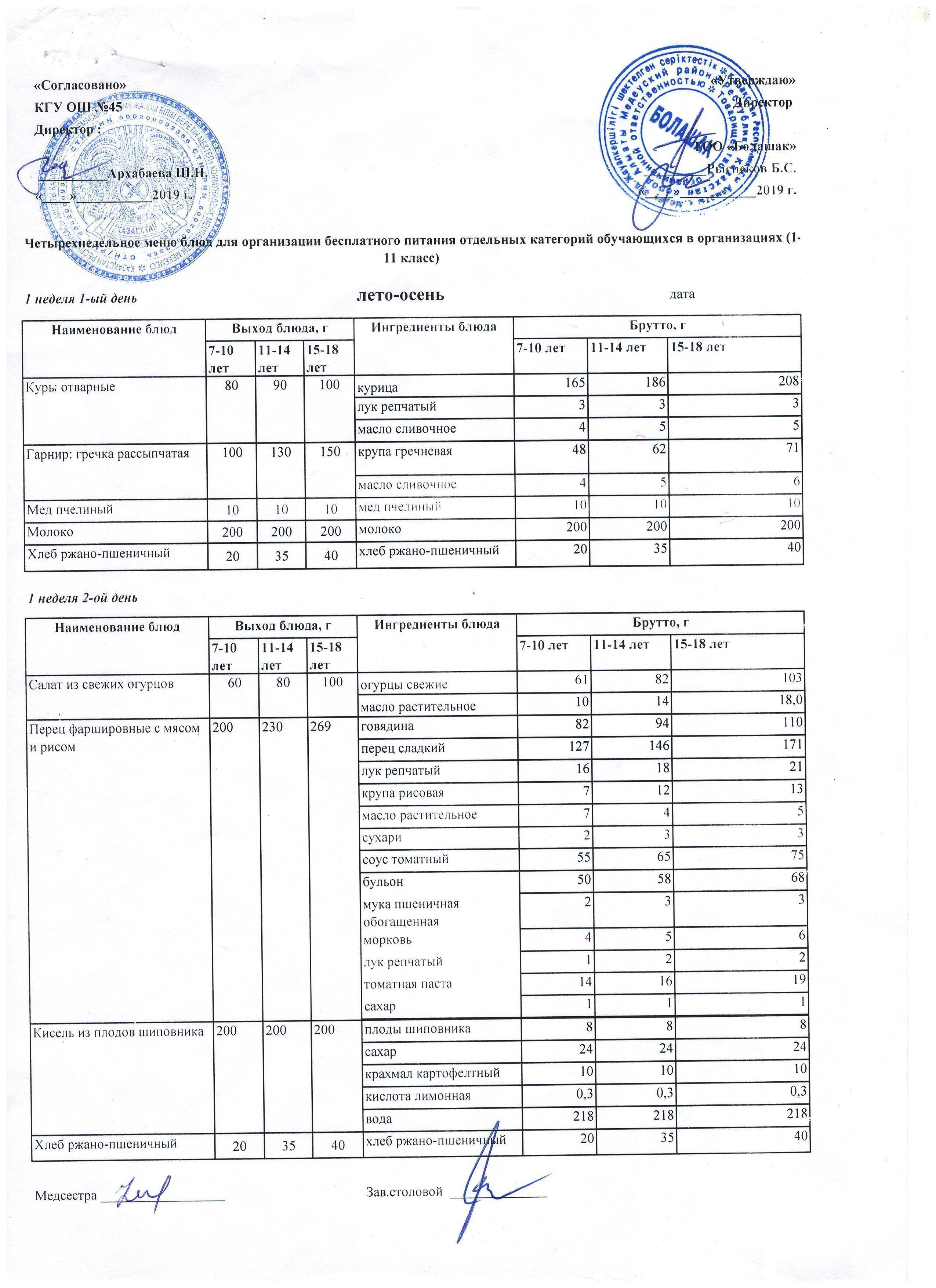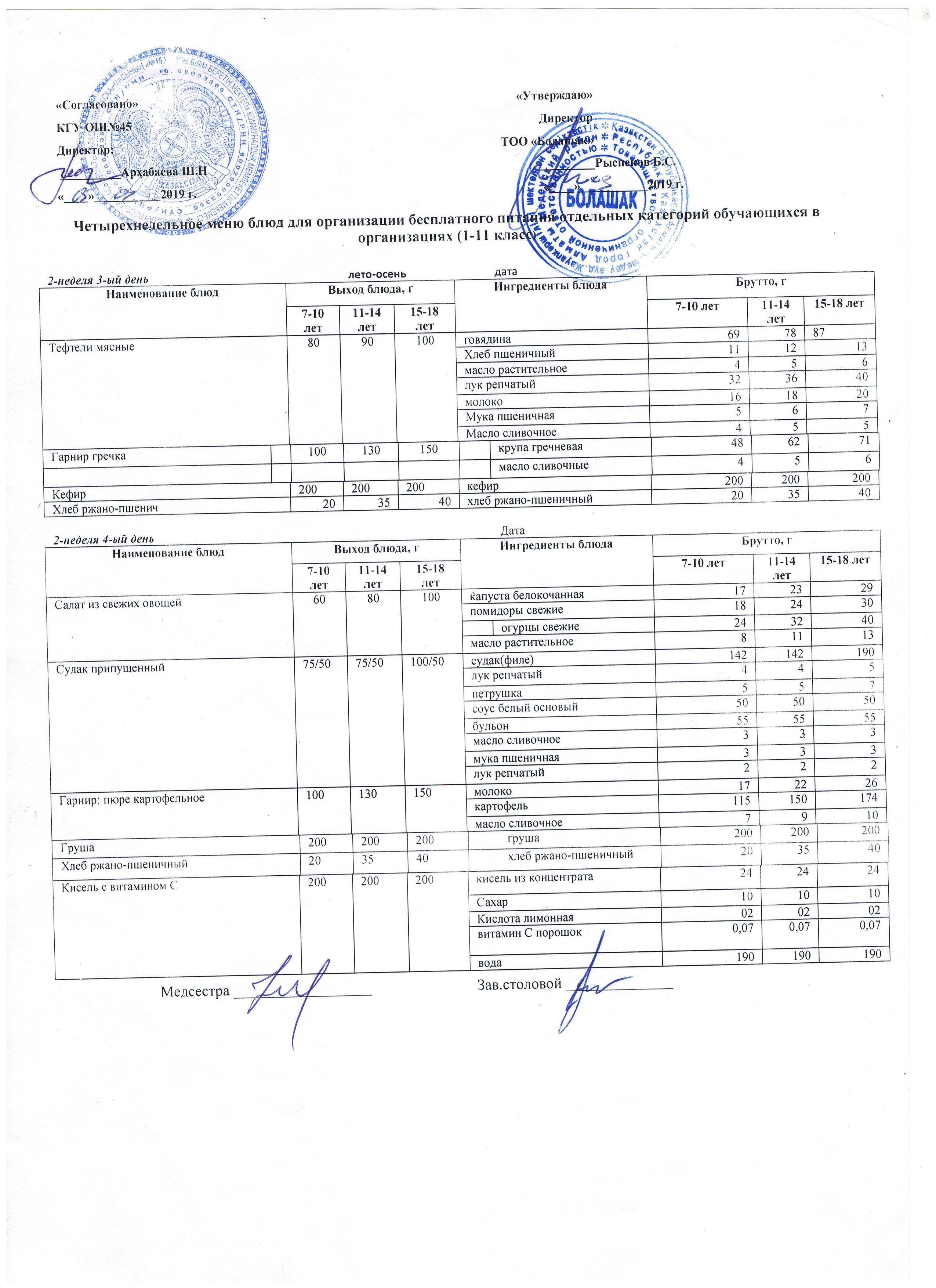 Ас мәзірі жаз-күз 2019 ж .Меню лето -осень на 2019 год