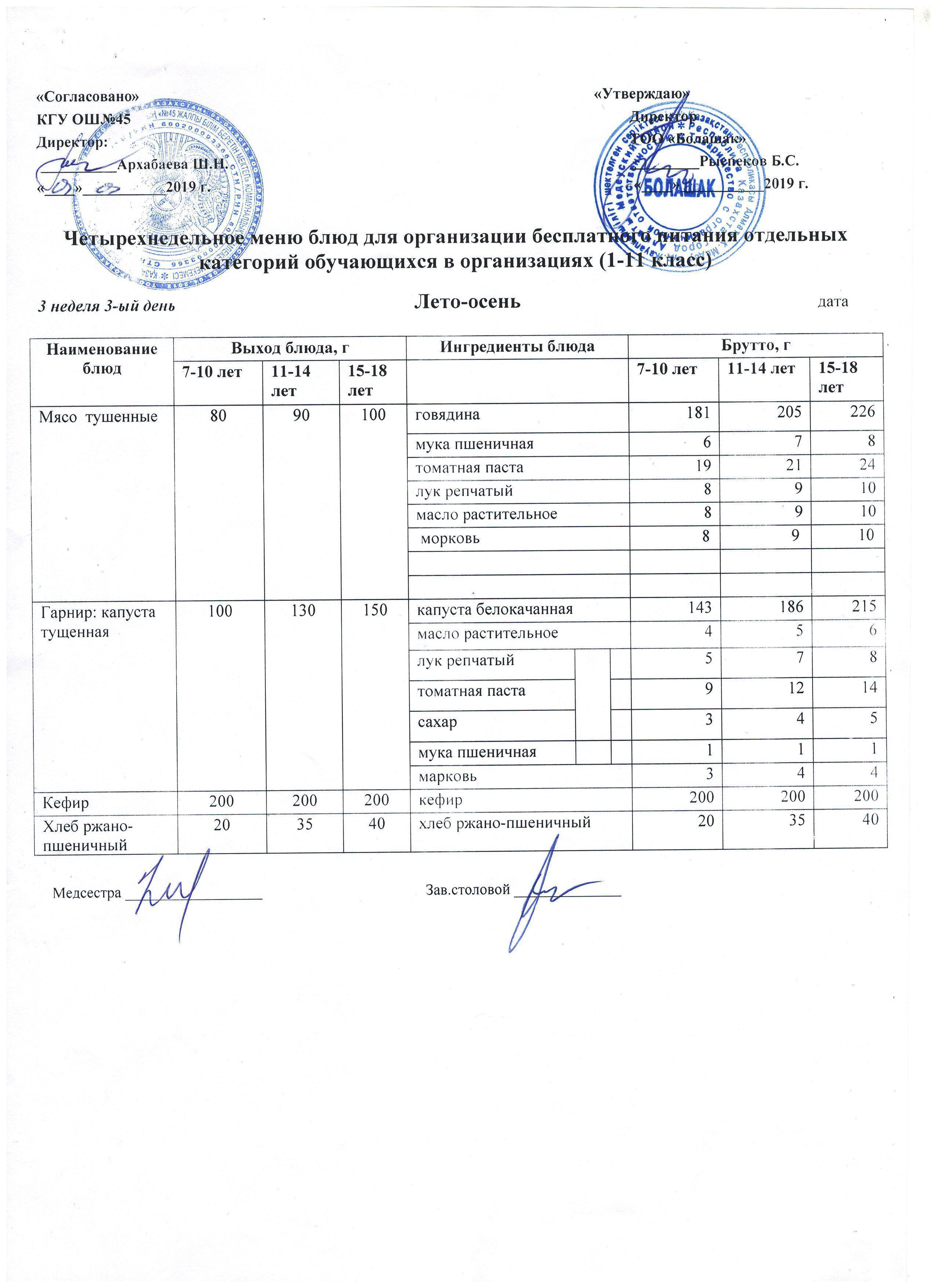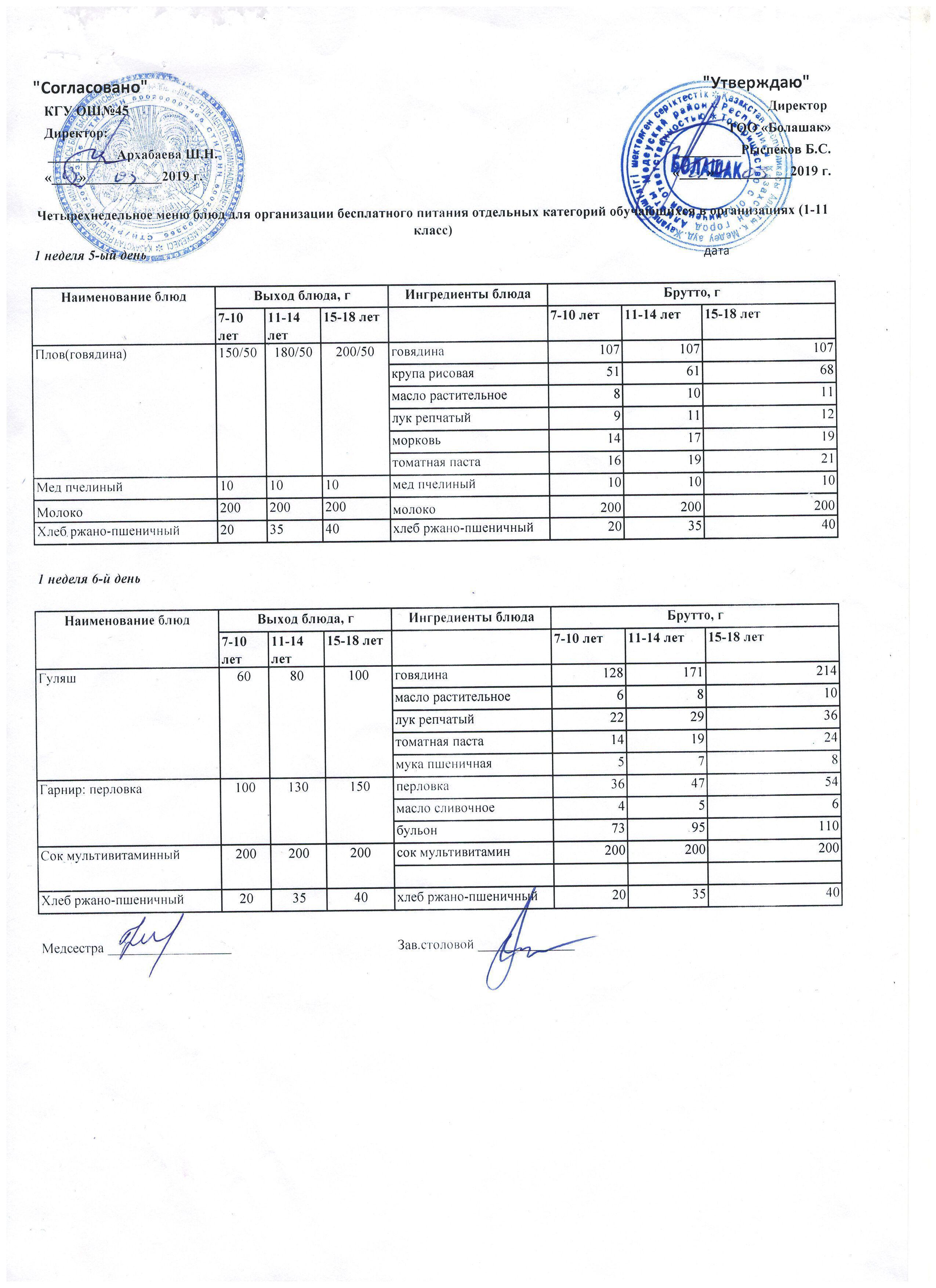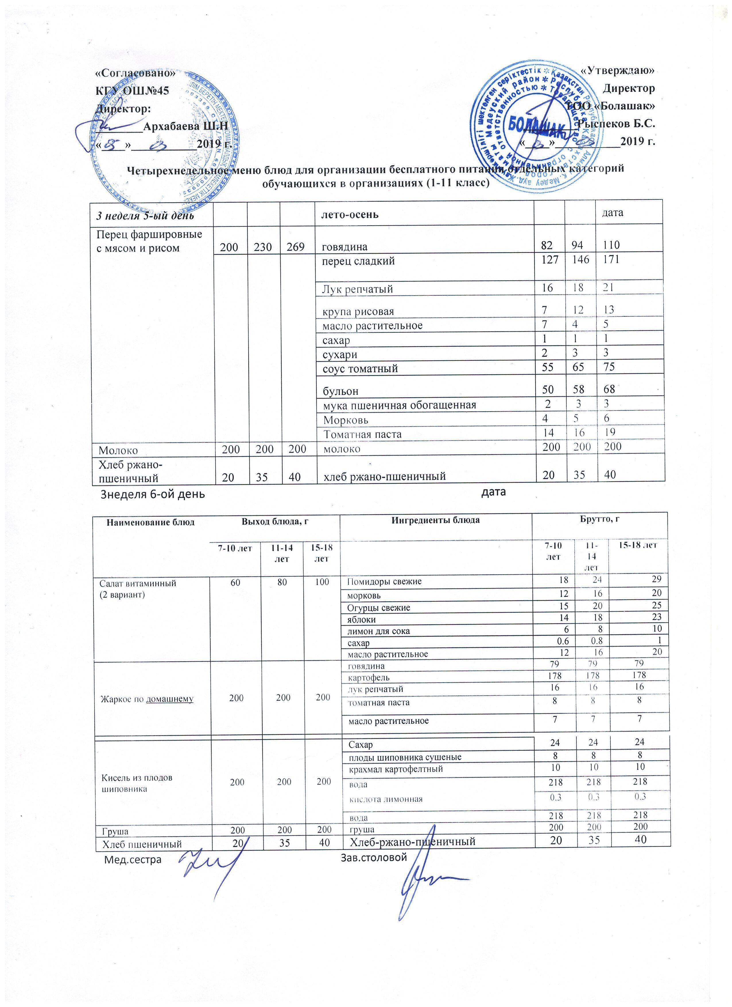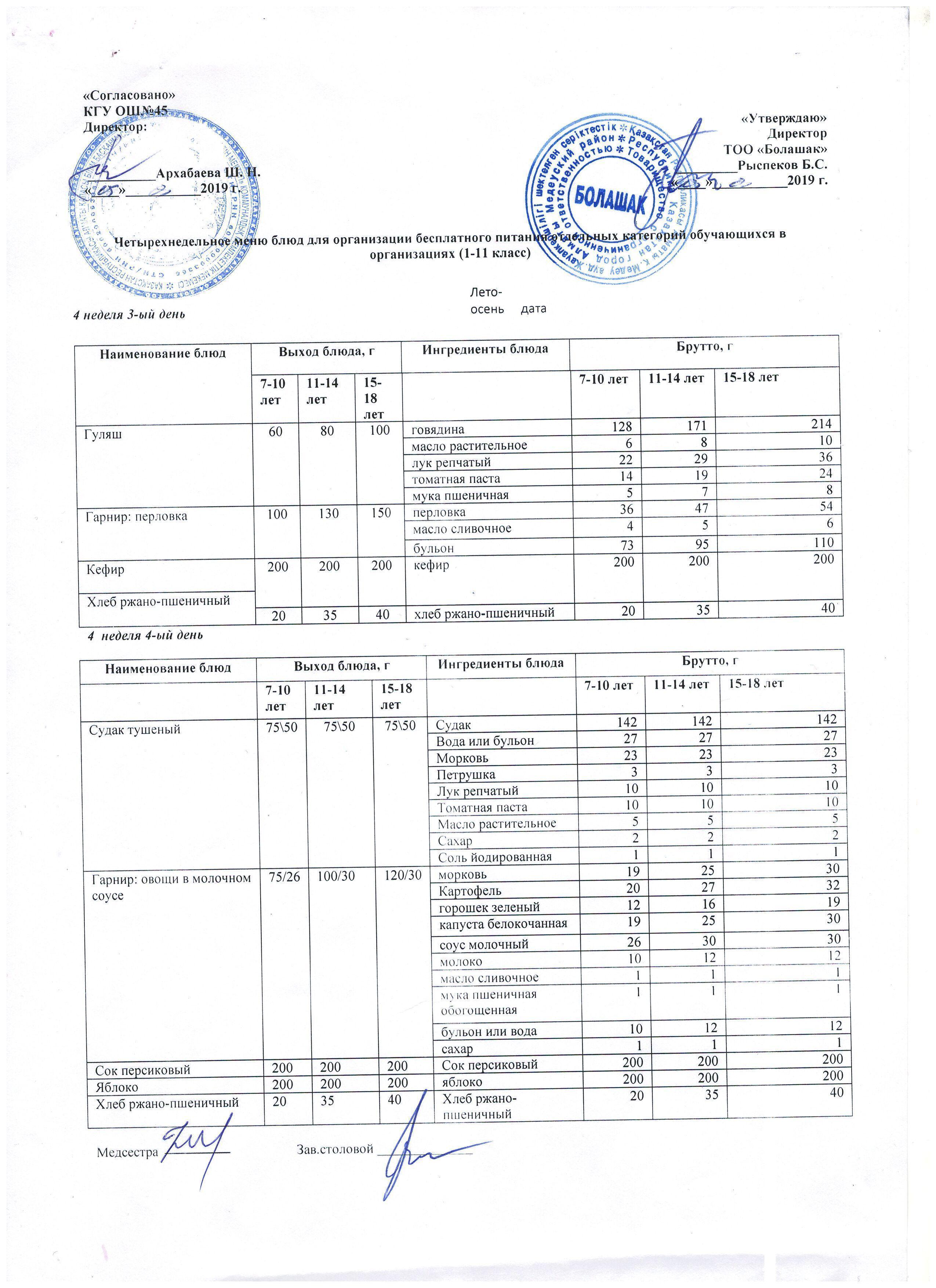Ас мәзірі жаз-күз 2019 ж .Меню лето -осень на 2019 год
