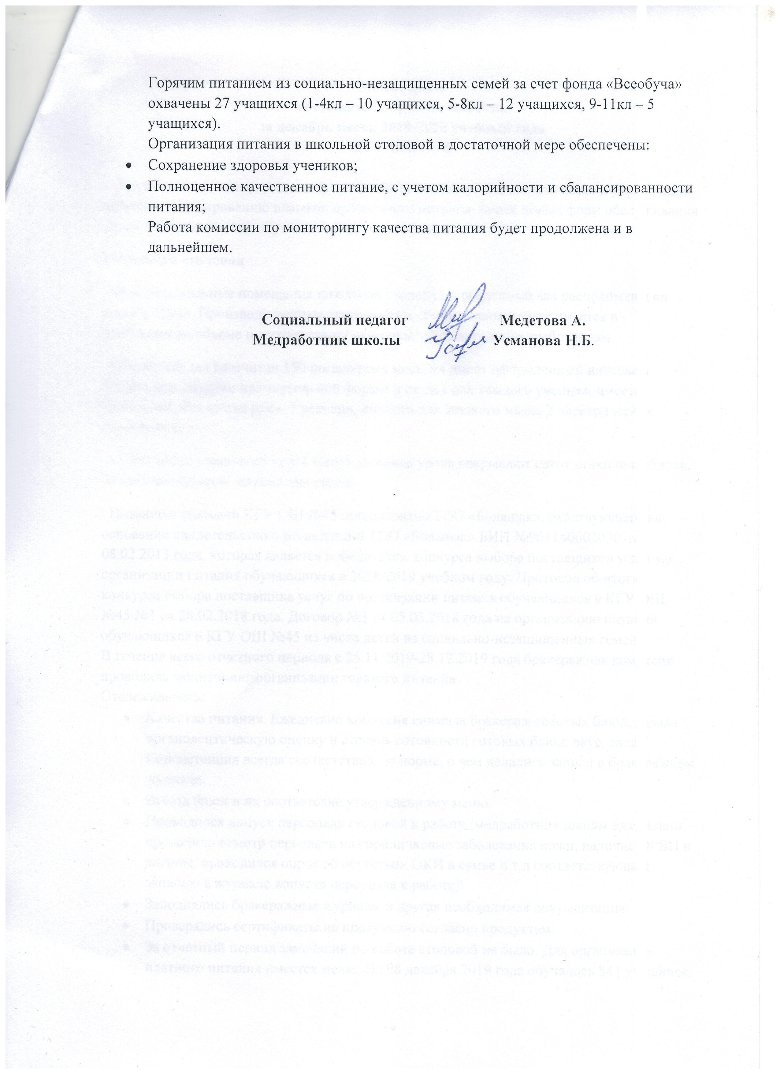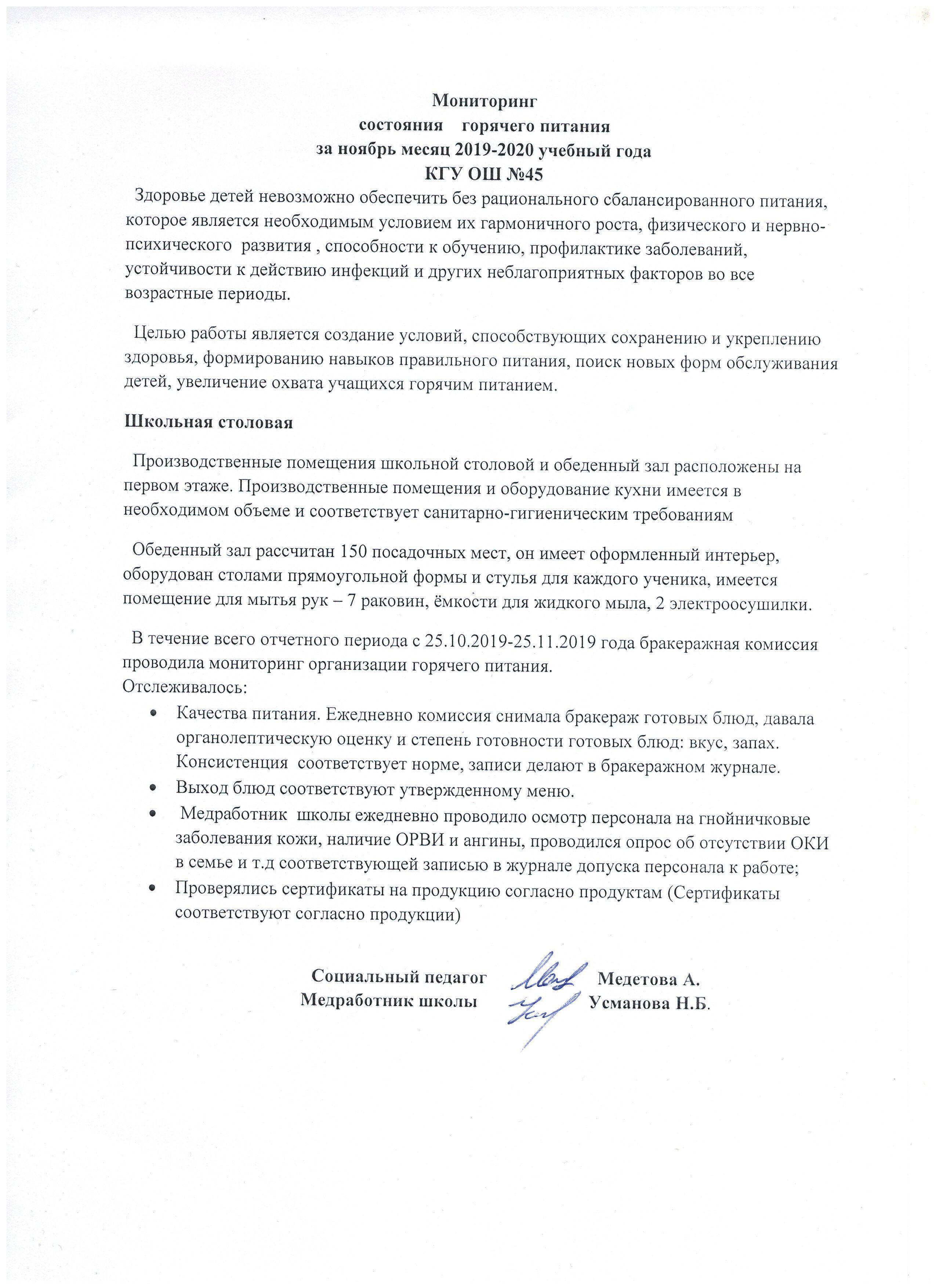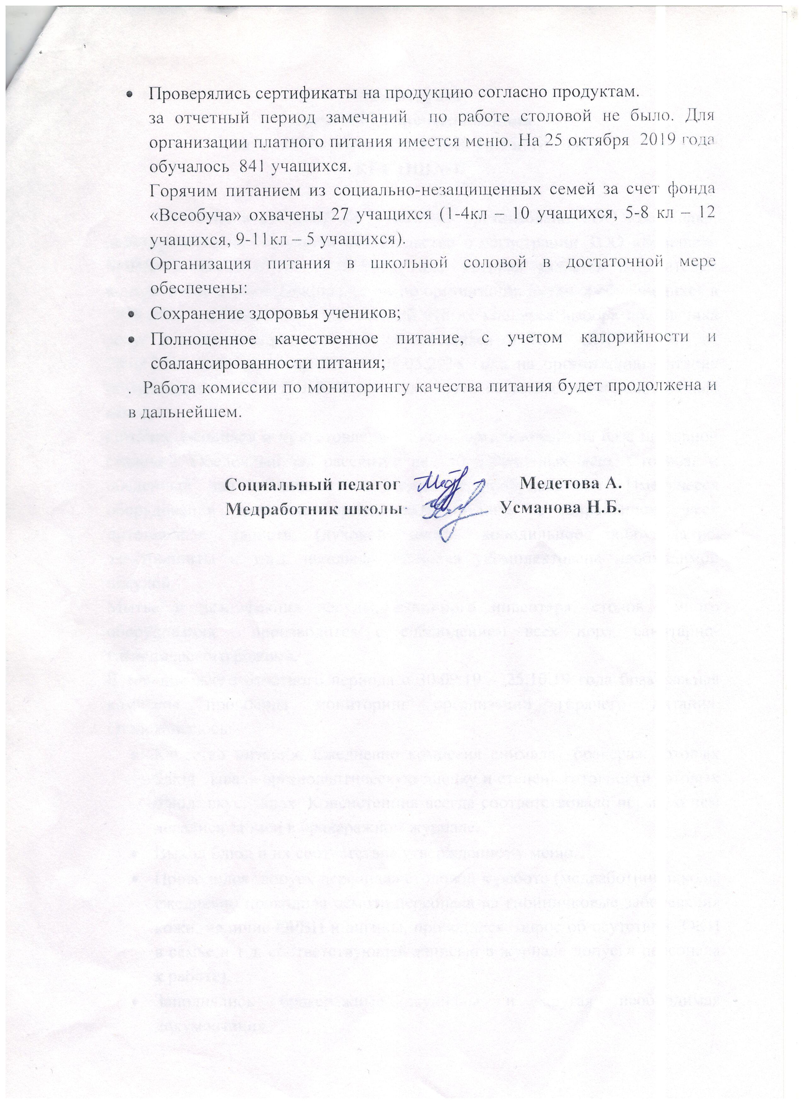 Тамақтану сапасының мониторингісі 2019ж, І жарты жылдық. Мониторинг качества питания 2019 год, I полугодие