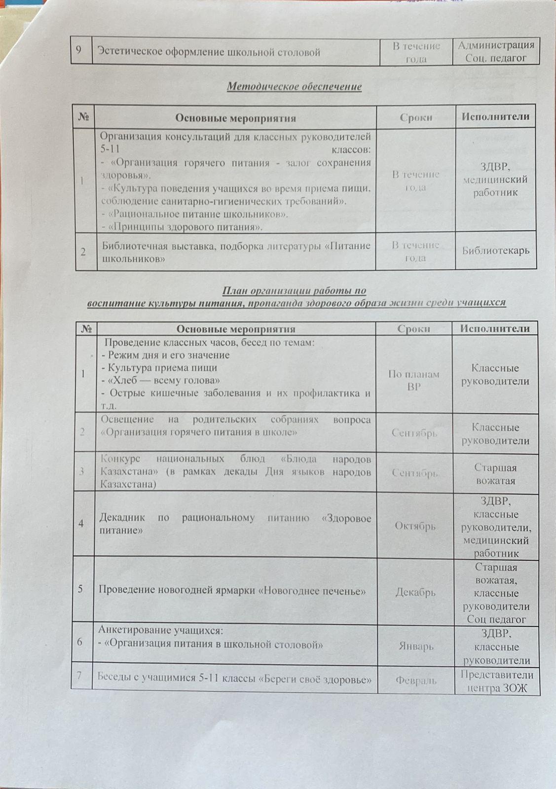 01 қыркүйек 2022 0 1 2 3 4 5 2022-2023 оқу жылына тамақтануды ұйымдастыру бойынша жұмыс жоспары. План работы по организации питания на 2022 - 2023 учебный год !