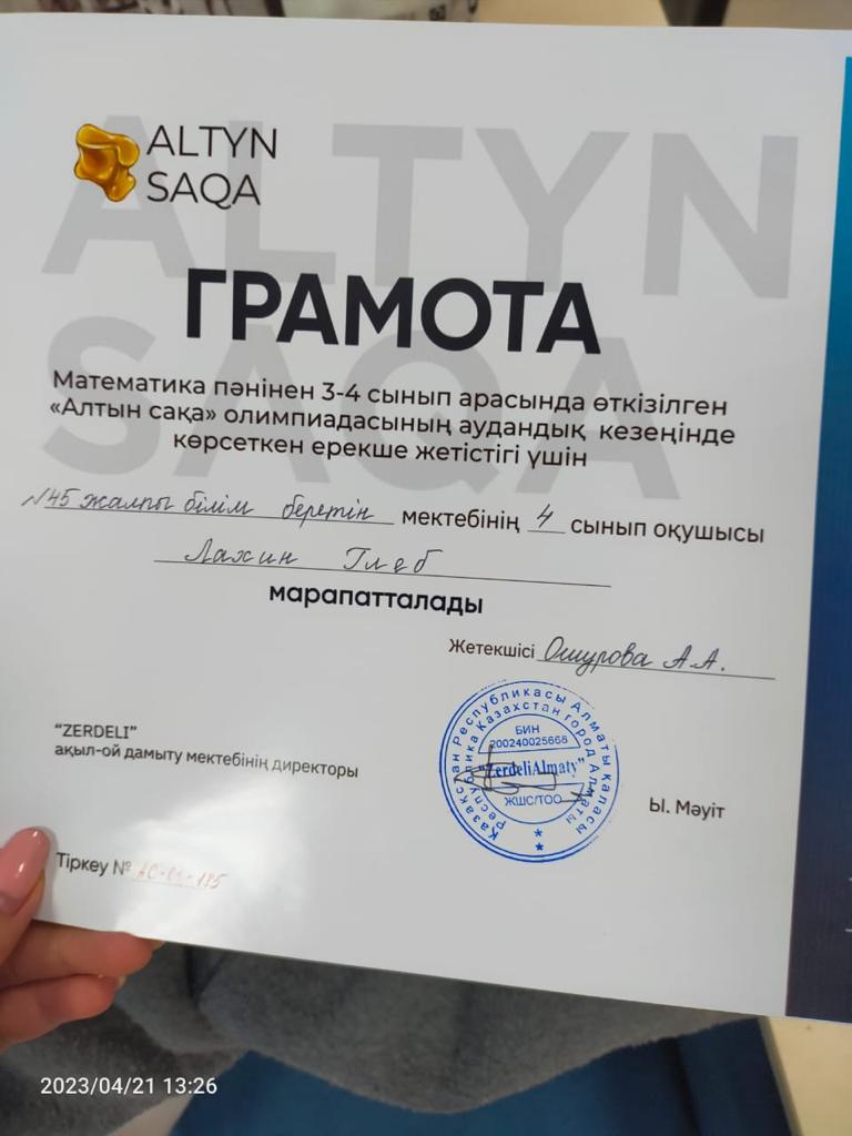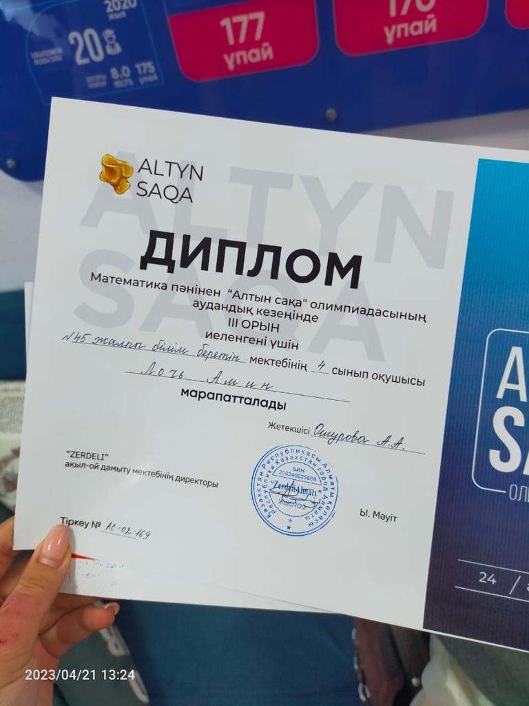 21 сәуір 2023 0 1 2 3 4 5 Біздің жетістігіміз.Наше достижение 3-4 сыныптар арасындағы Алтын сақа олимпиадасының марапаттау кезеңі.
