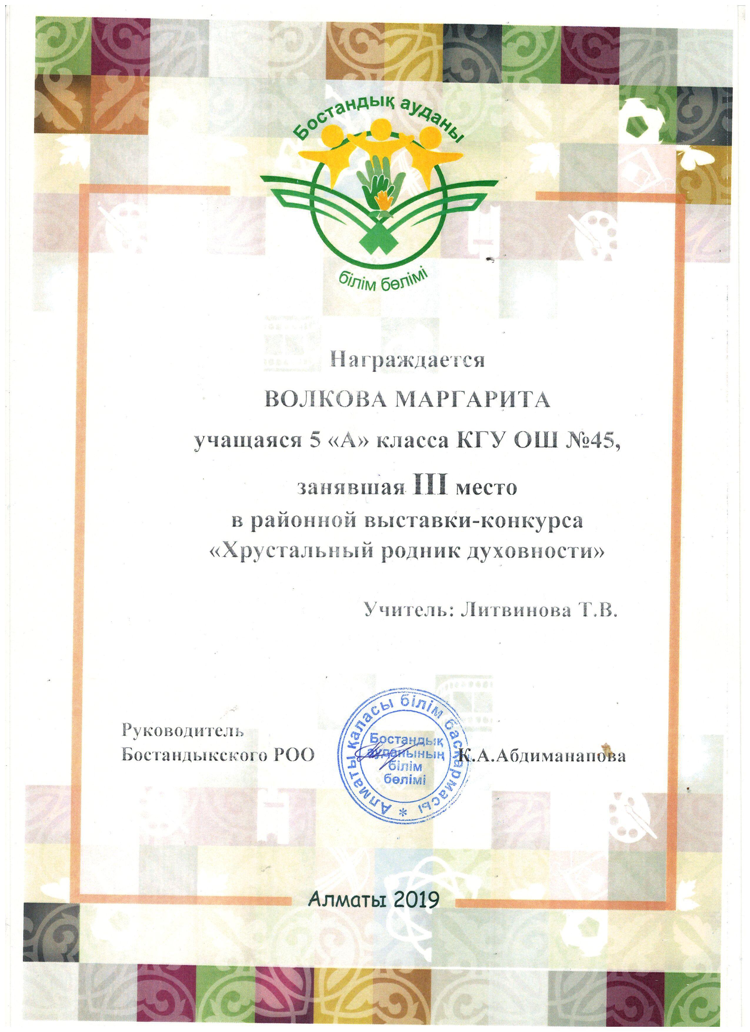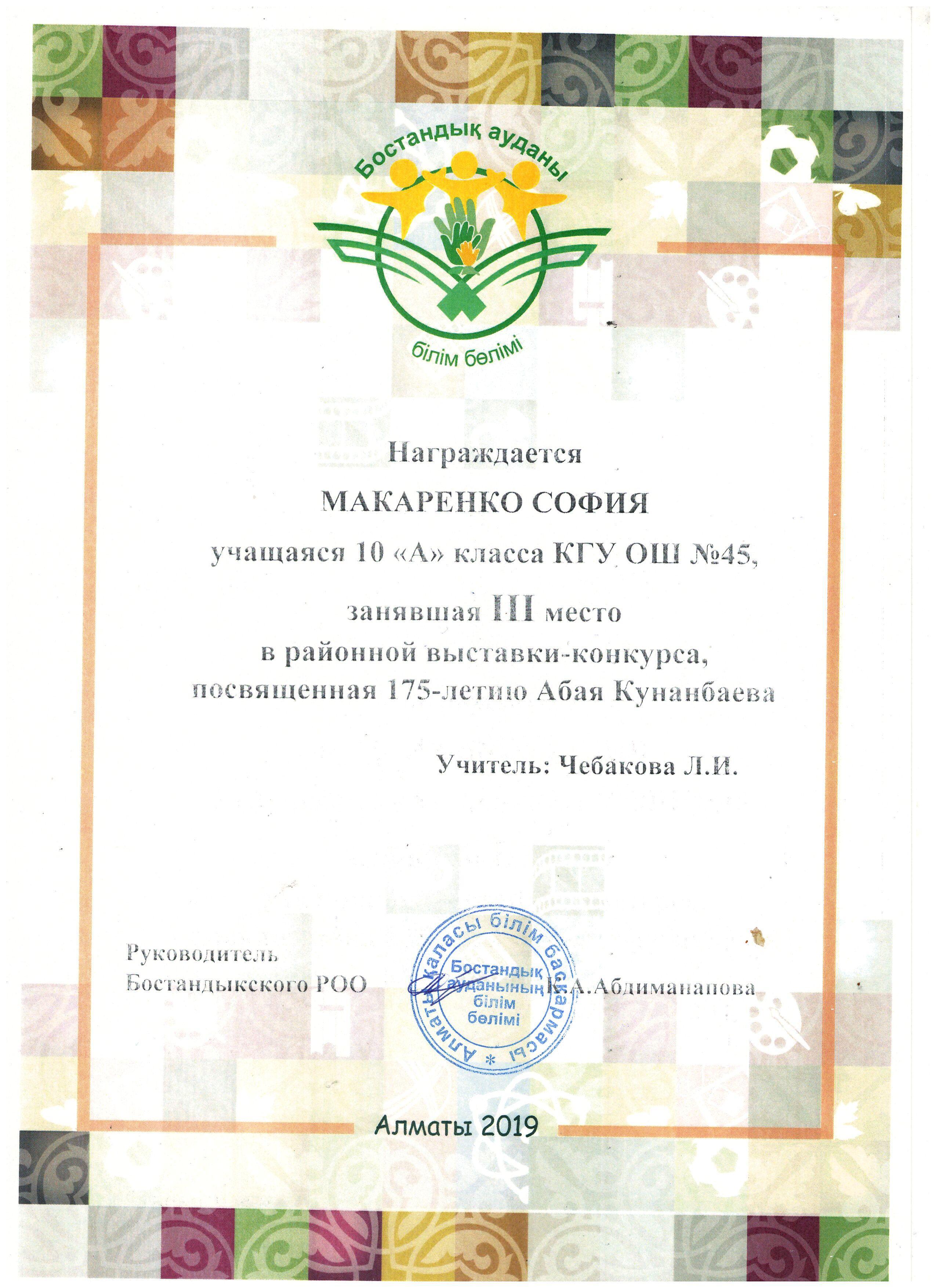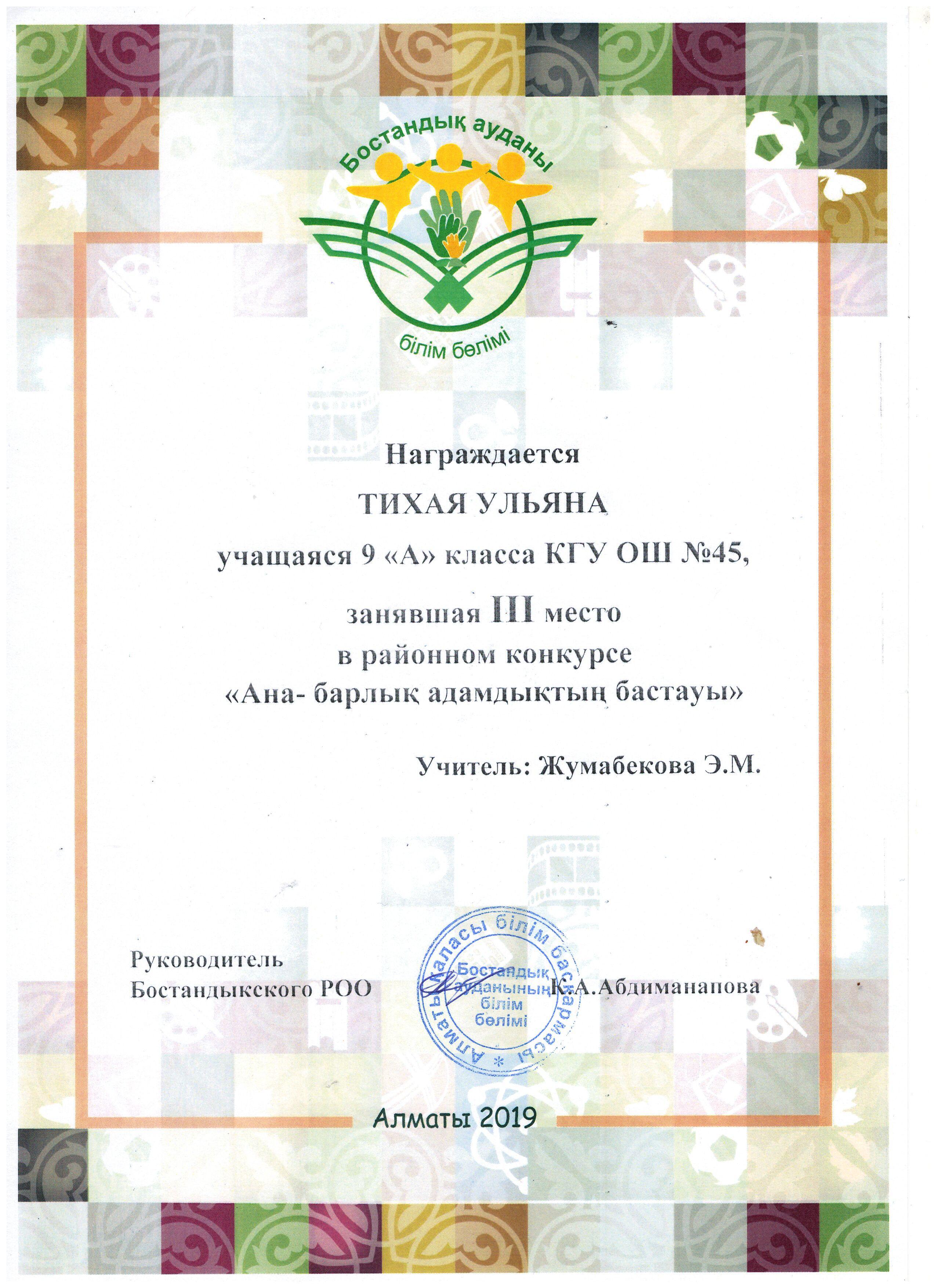 Коммунальное государственное учреждение «Общеобразовательная школа №45» Управления образования города Алматы