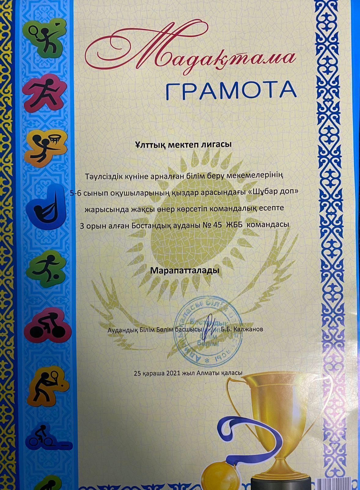 Мектеп оқушыларының жетістігі. Достижение школьников