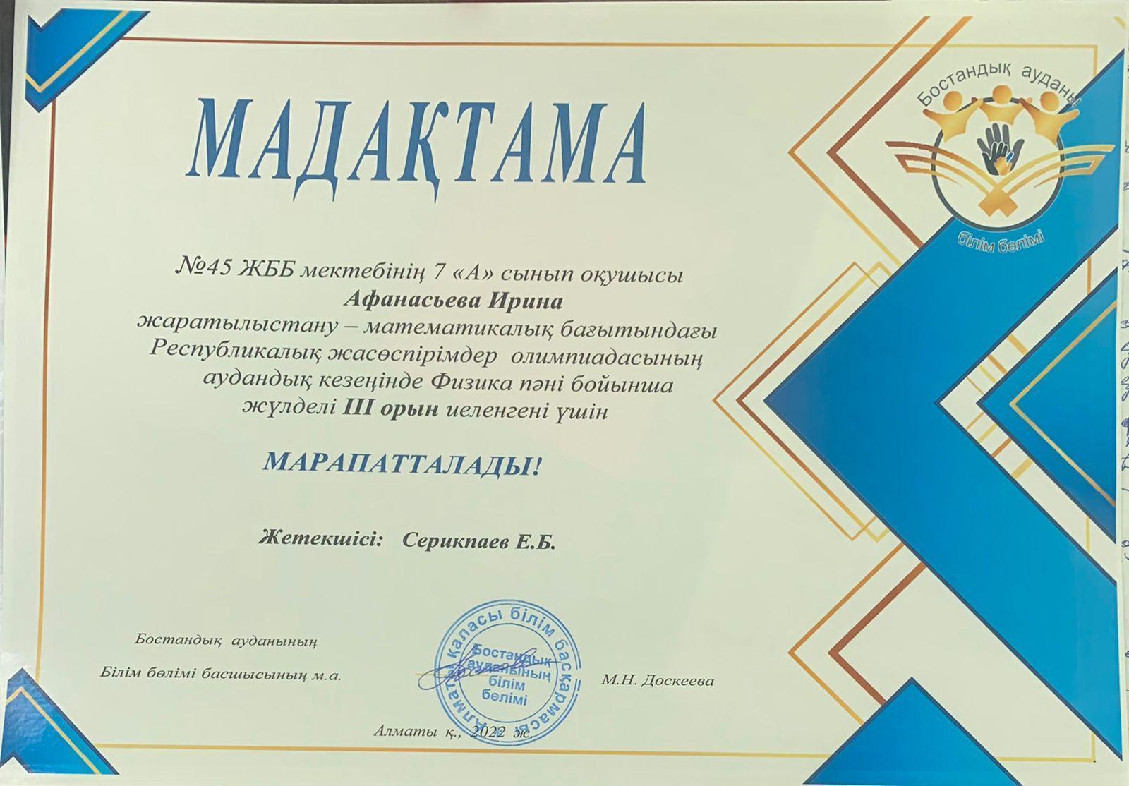 Мектеп оқушыларының жетістігі. Достижение школьников